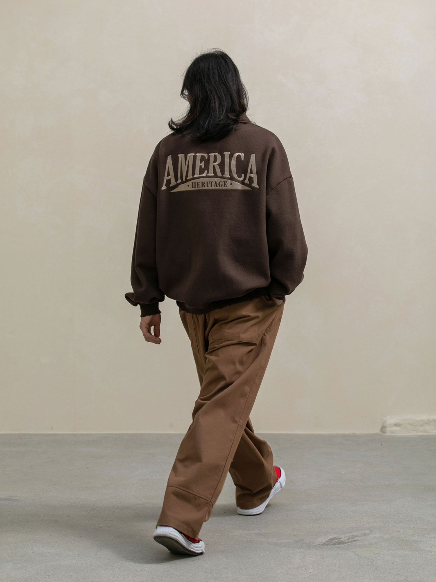 카라 패치 하프집업 기모 스웨트셔츠 2컬러