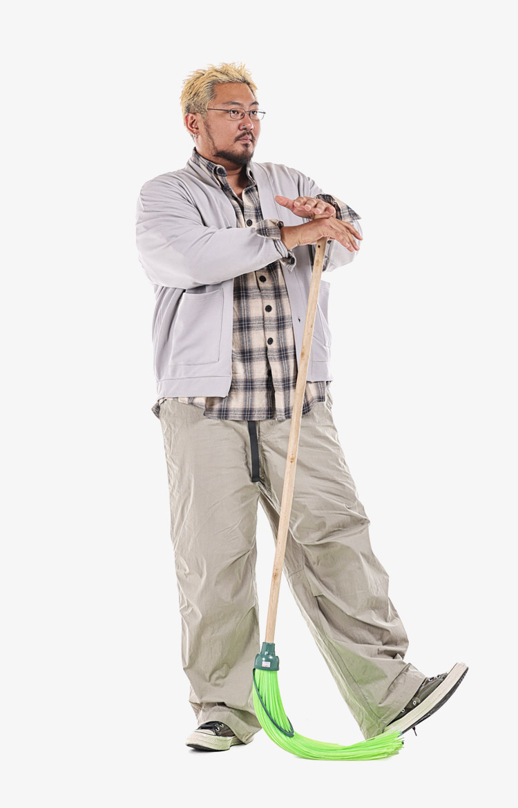 체크 셔츠와 그레이 가디건의 믹스로 유머러스한 데일리 웨어 감성 표현.착용 사이즈 : 상의 4XL~5XL / 하의 5XL스타일리스트 : pilyeye