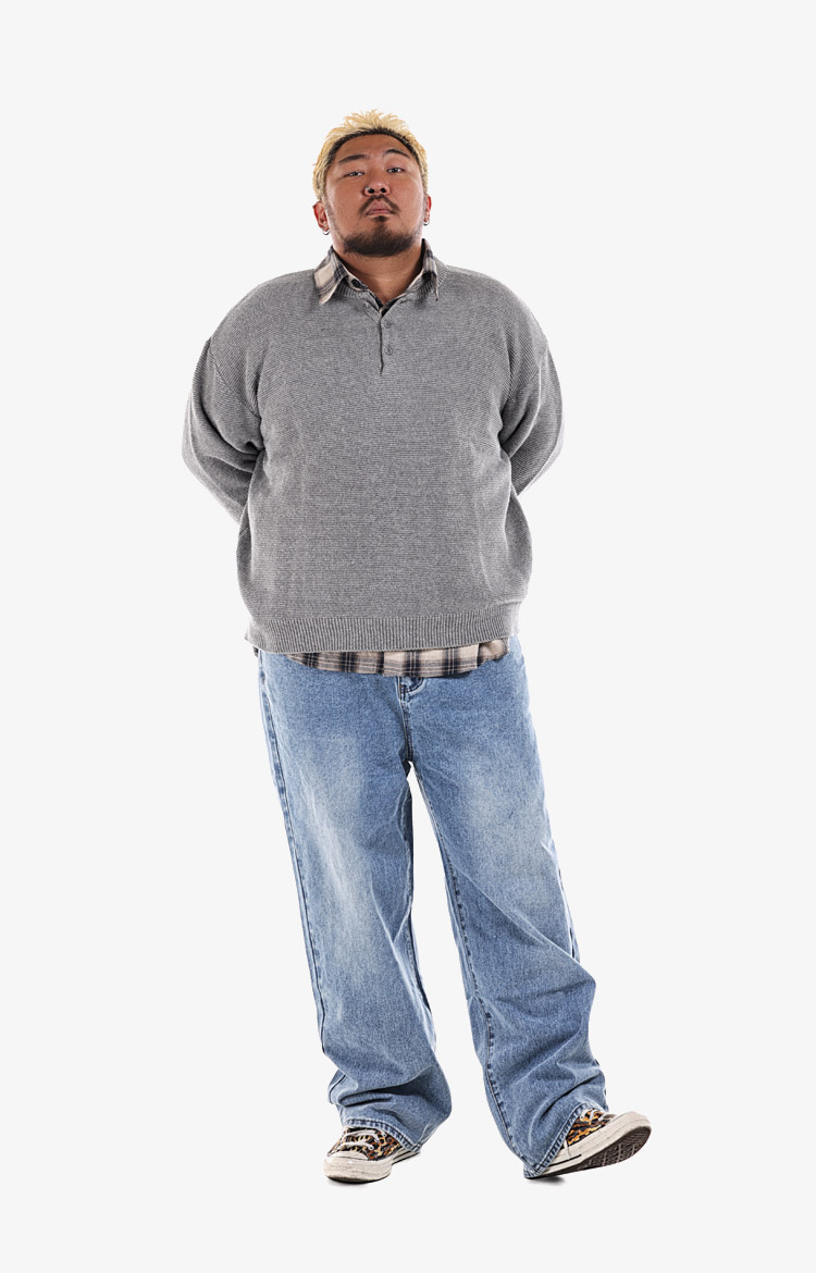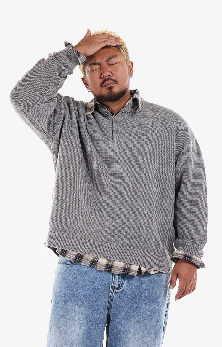 그레이 니트 톤온톤 코디로 안정적이고 따뜻한 데일리 감성 완성.착용 사이즈 : 상의 4XL~5XL / 하의 5XL스타일리스트 : pilyeye