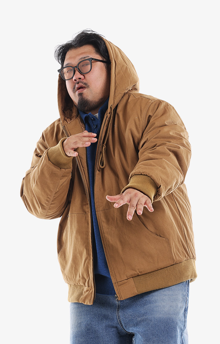 베이지 후드 자켓과 블루 니트의 레이어링으로 캐주얼하면서도 따뜻한 무드를 완성한 가을 룩.착용 사이즈 : 상의 4XL~5XL / 하의 5XL스타일리스트 : pilyeye