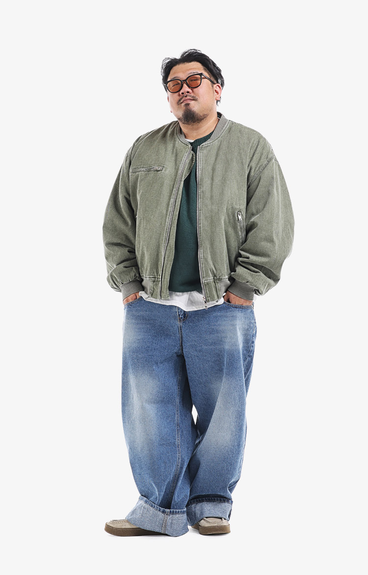 그레이 블루종과 그린 스웻의 레이어링으로 편안하면서도 세련된 데일리 캐주얼룩.착용 사이즈 : 상의 4XL~5XL / 하의 5XL스타일리스트 : pilyeye