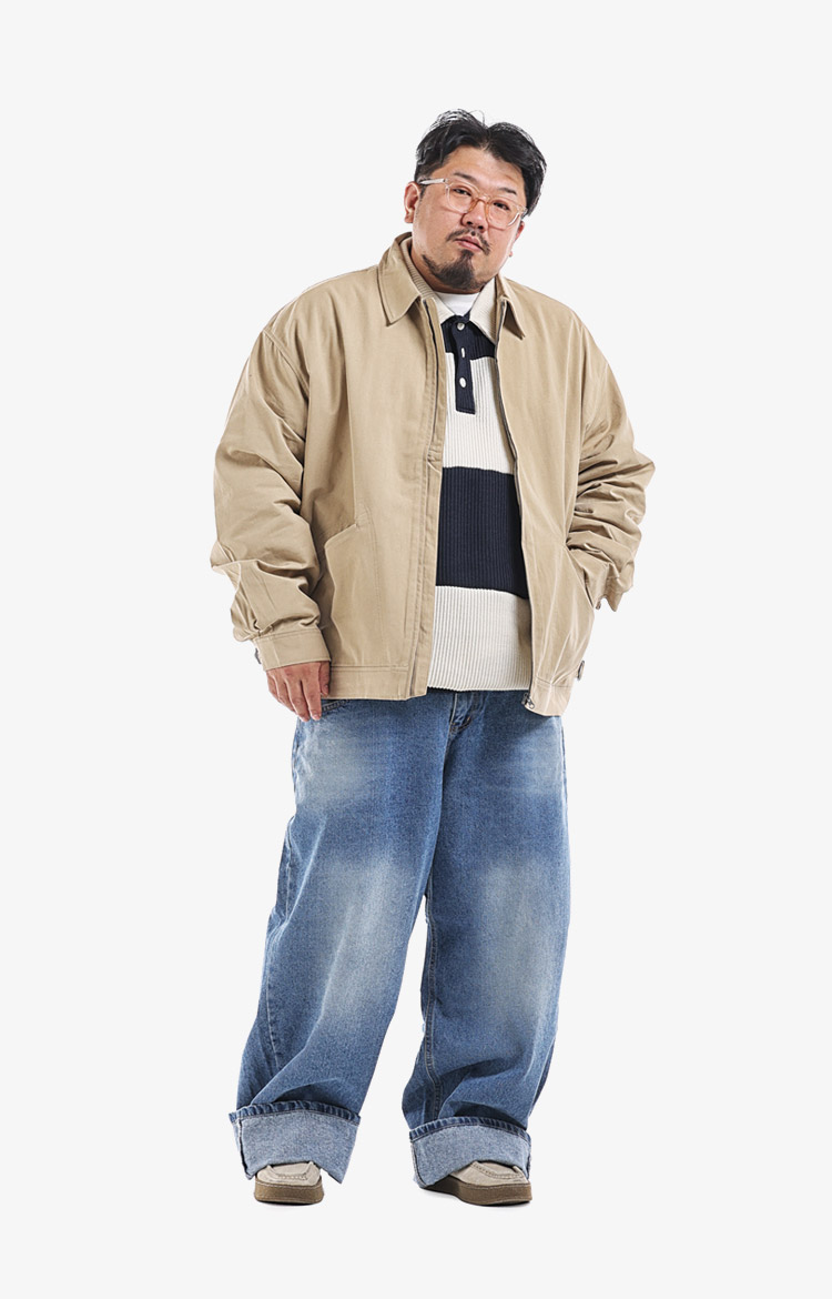 베이지 자켓과 컬러 블록 니트의 조합으로 부드러운 톤의 세련된 무드를 연출한 스타일.착용 사이즈 : 상의 4XL~5XL / 하의 5XL스타일리스트 : pilyeye