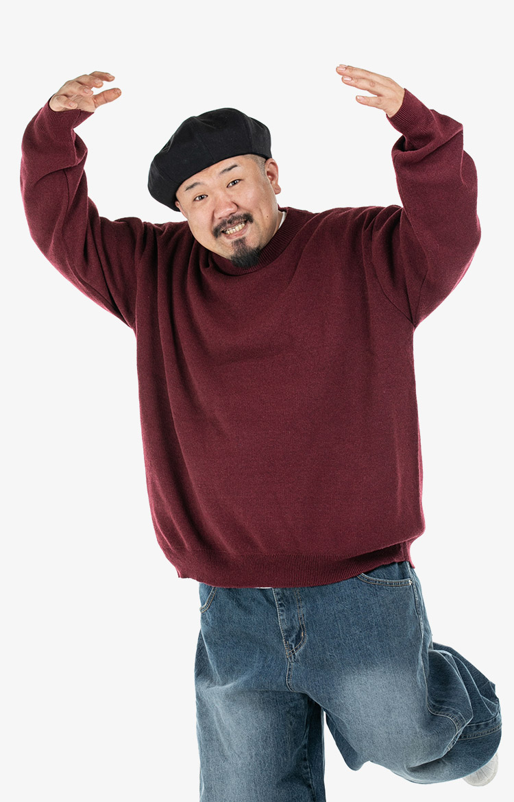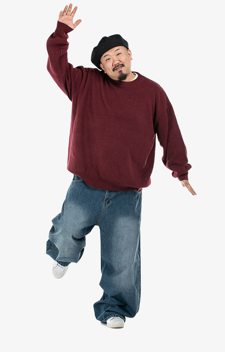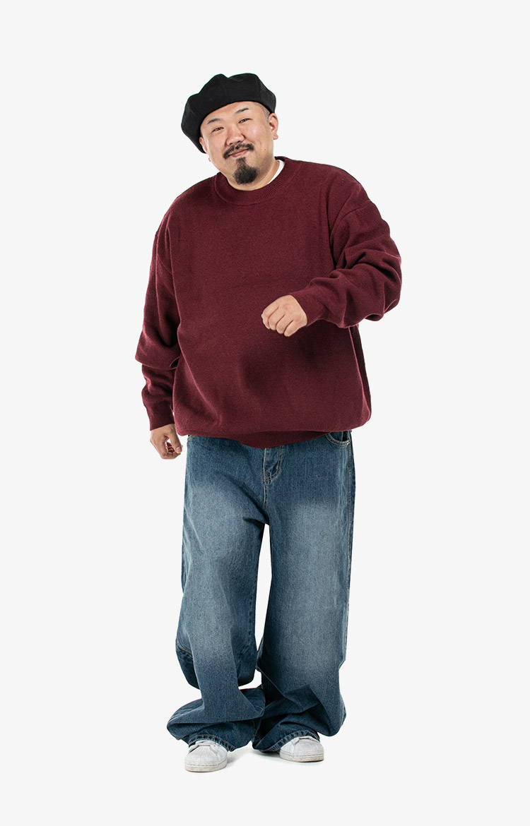 와인색 니트와 청바지를 매치하고 베레모로 완성시킨 스타일링 착용 사이즈 : 상의 4XL~5XL / 하의5XL 스타일리스트 : SCENE