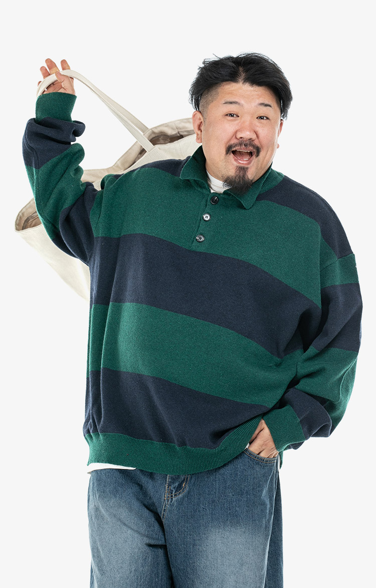 스트라이프 카라 드롭 숄더 니트 2컬러