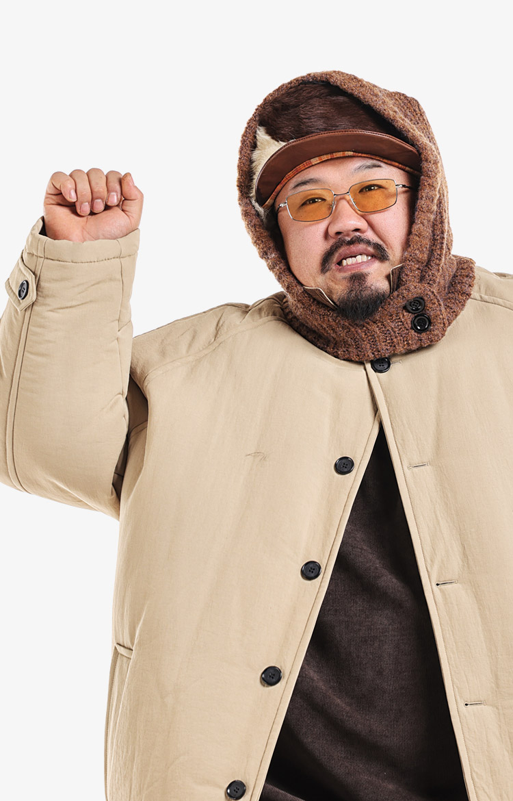 맥시 렝스 베이지 코트 × 우샨카 × 어그 부츠. 어스톤 팔레트 통일로 롱 실루엣의 수직 비율 극대화.착용 사이즈 : 상의 4XL~5XL / 하의 5XL스타일리스트 : pilyeye