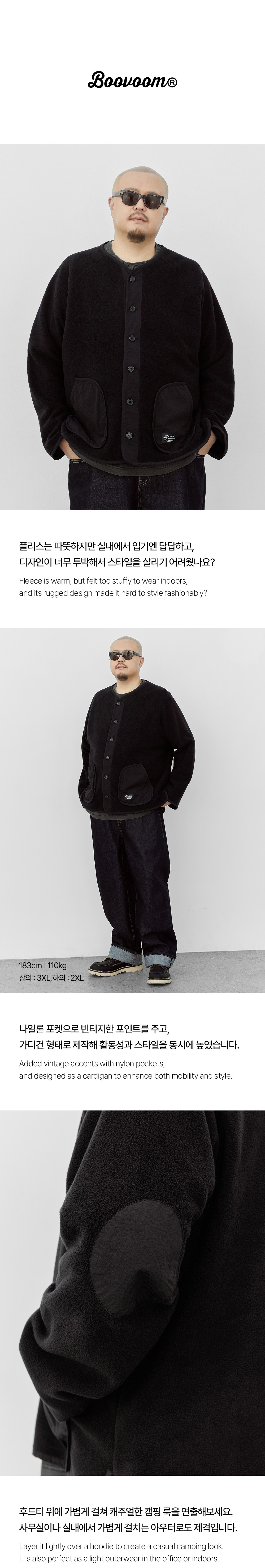 캠프 나일론 패치 플리스 가디건