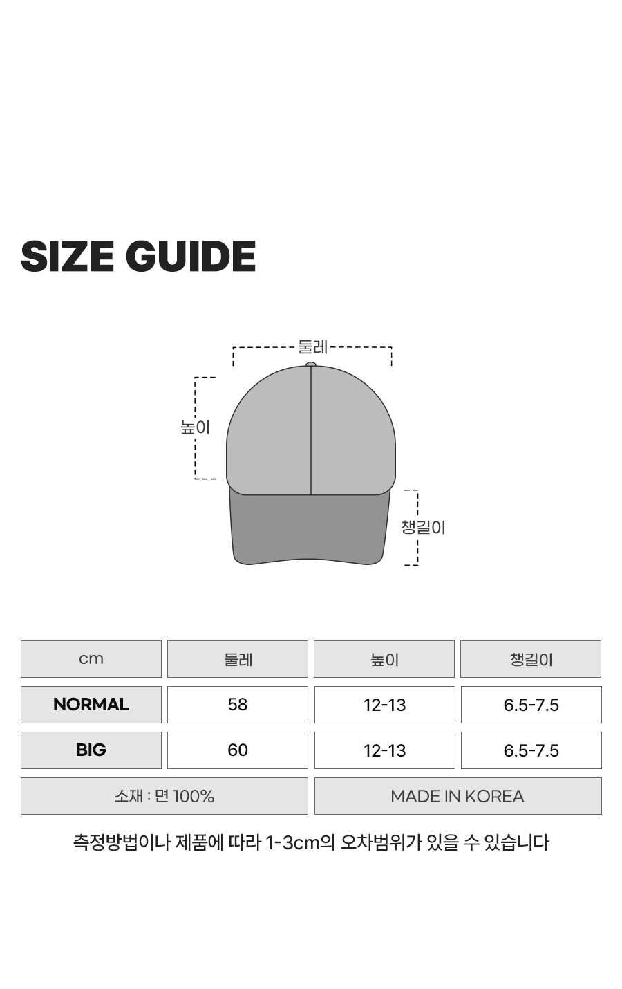 - 상품 상세란의 사이즈표는 업체 기준 측정정보 입니다.