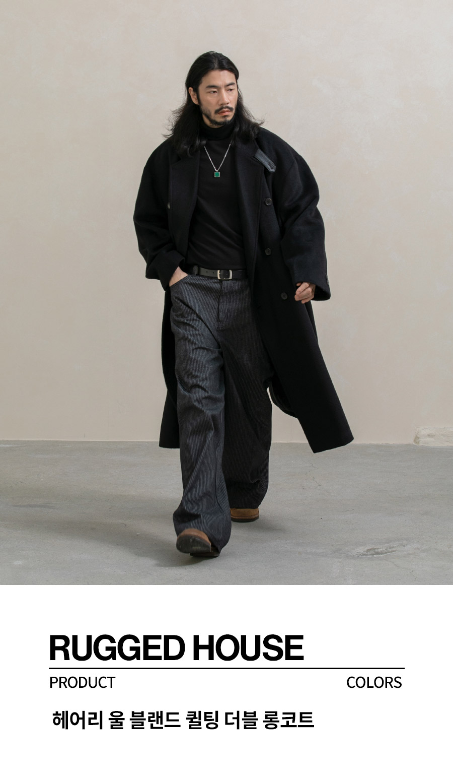 헤어리 울 블랜드 퀼팅 더블 롱코트 2컬러