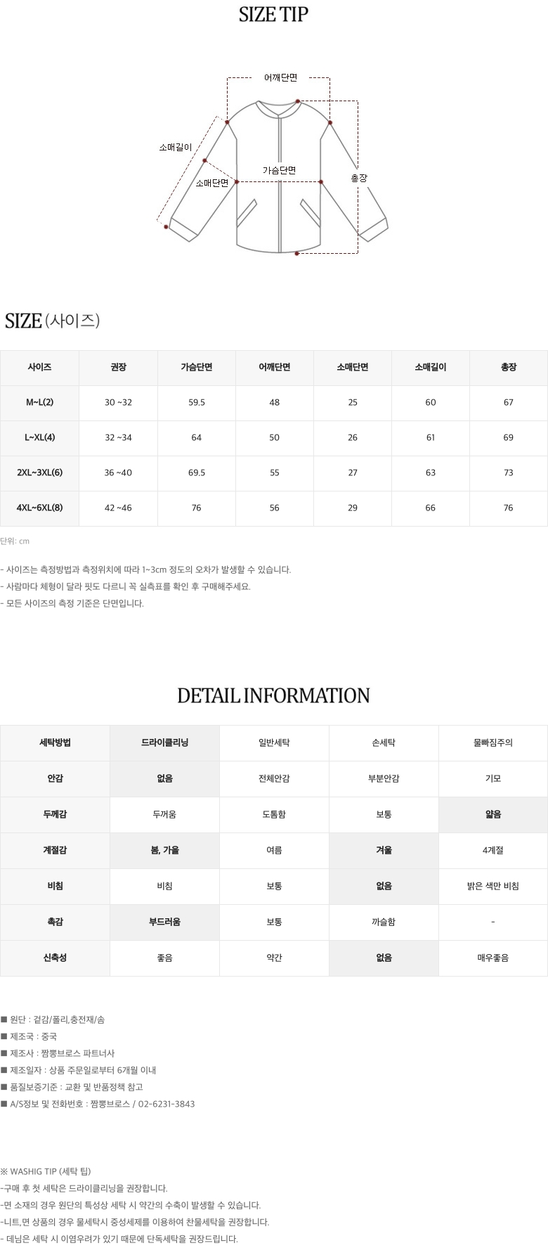 | 컬러 & 사이즈 | 상품 상세 사이즈 참조 | |