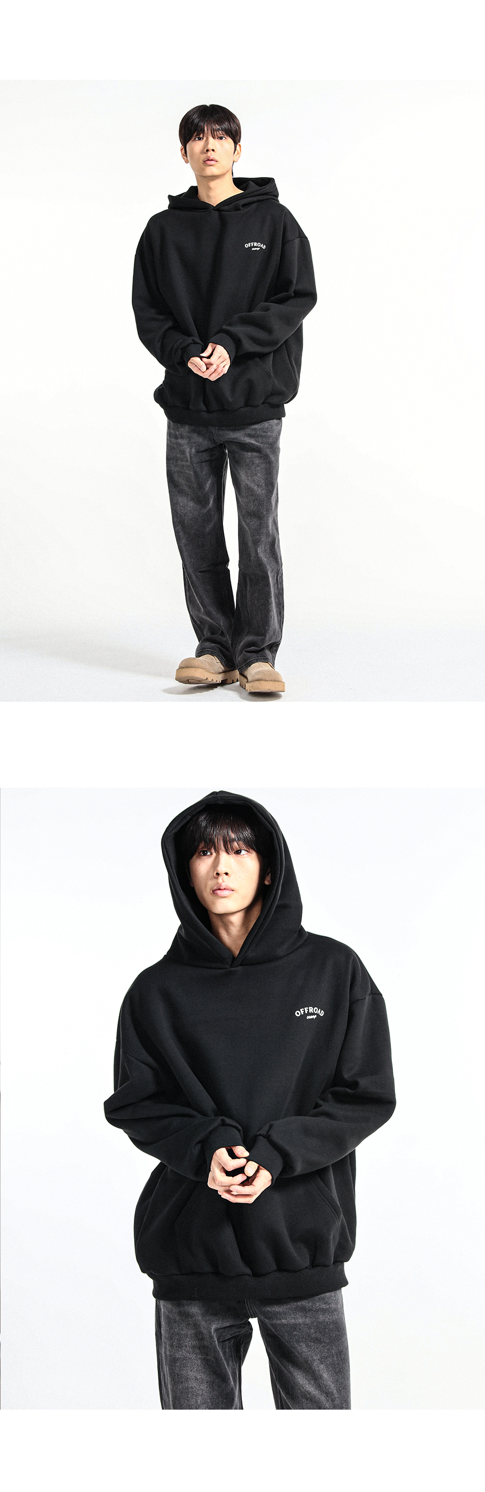 보통 후드티의 모자보다 더 크게 제작해 트렌디한 핏과, 편안한 착용감으로 제작하였습니다 !