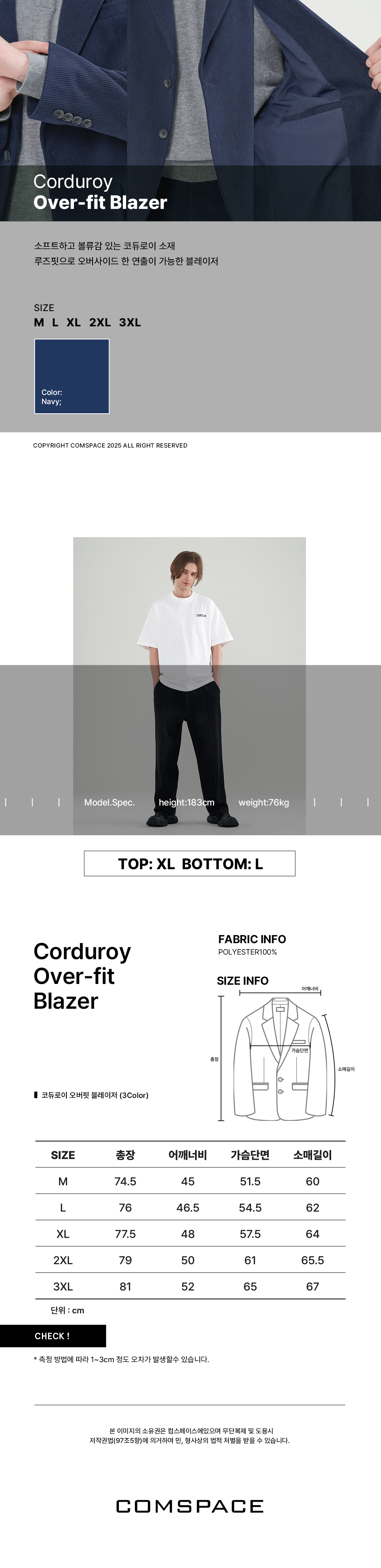 코듀로이 오버핏 블레이저_네이비 SBWKA12N
