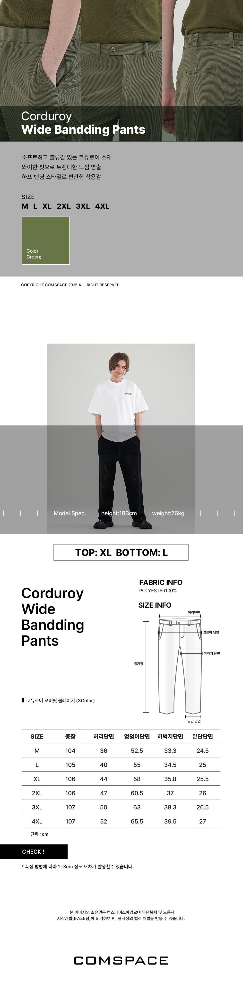 코듀로이 와이드 밴딩 팬츠_그린 SBWPK11E
