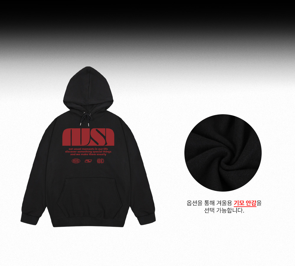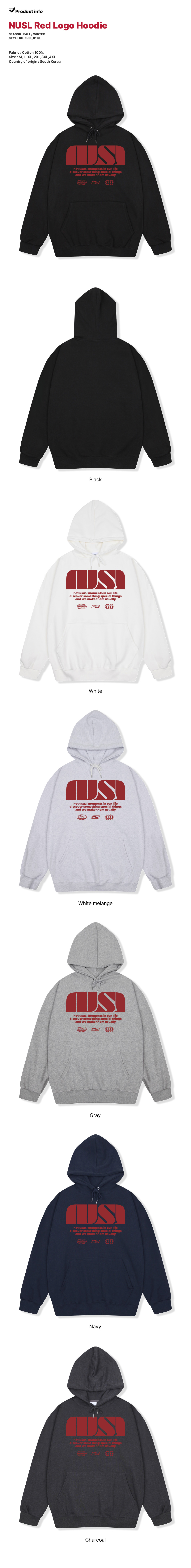 [당일배송][기모선택가능] 오버핏 빅사이즈 남녀공용 NUSL 레드로고 후드티 6color