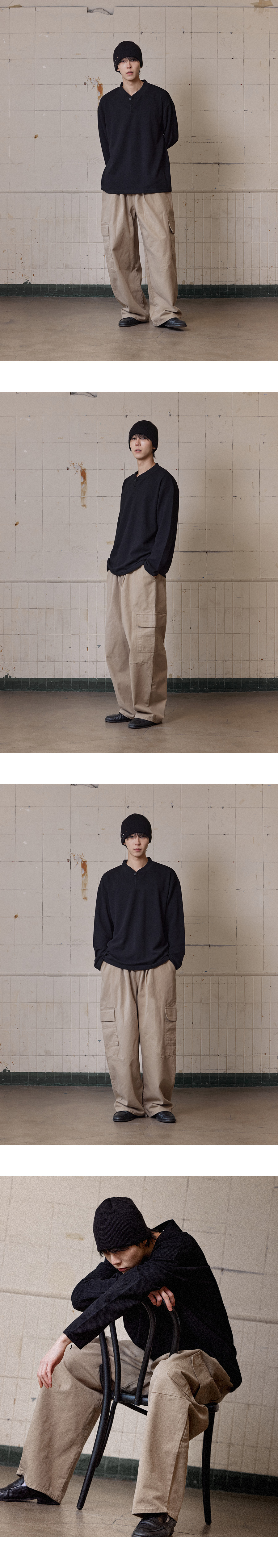 차이나 헨리넥 엠보 긴팔 티셔츠 챠콜