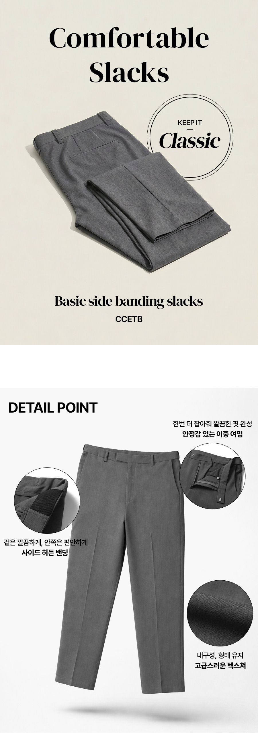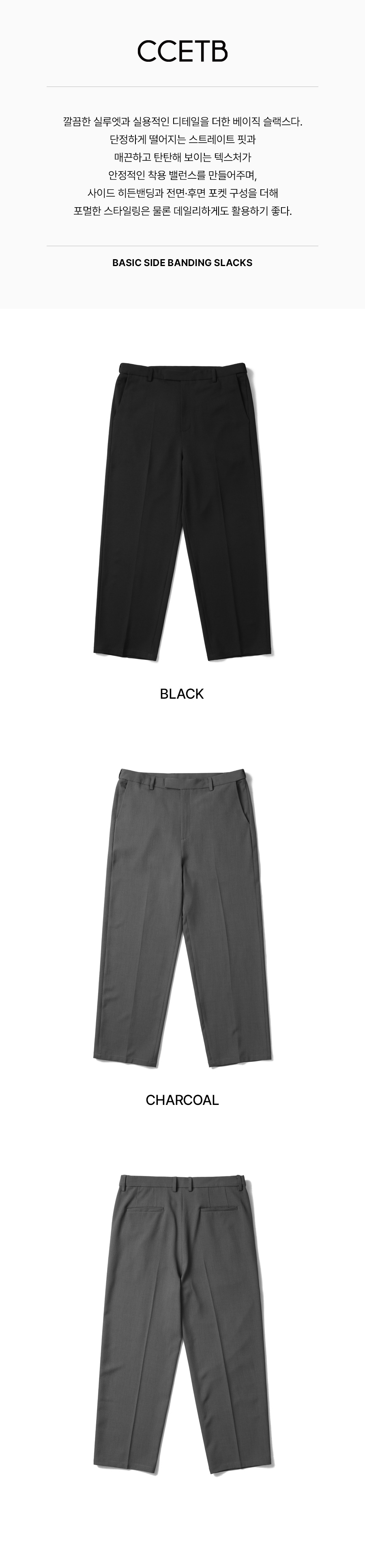 베이직 사이드 밴딩 슬랙스 챠콜