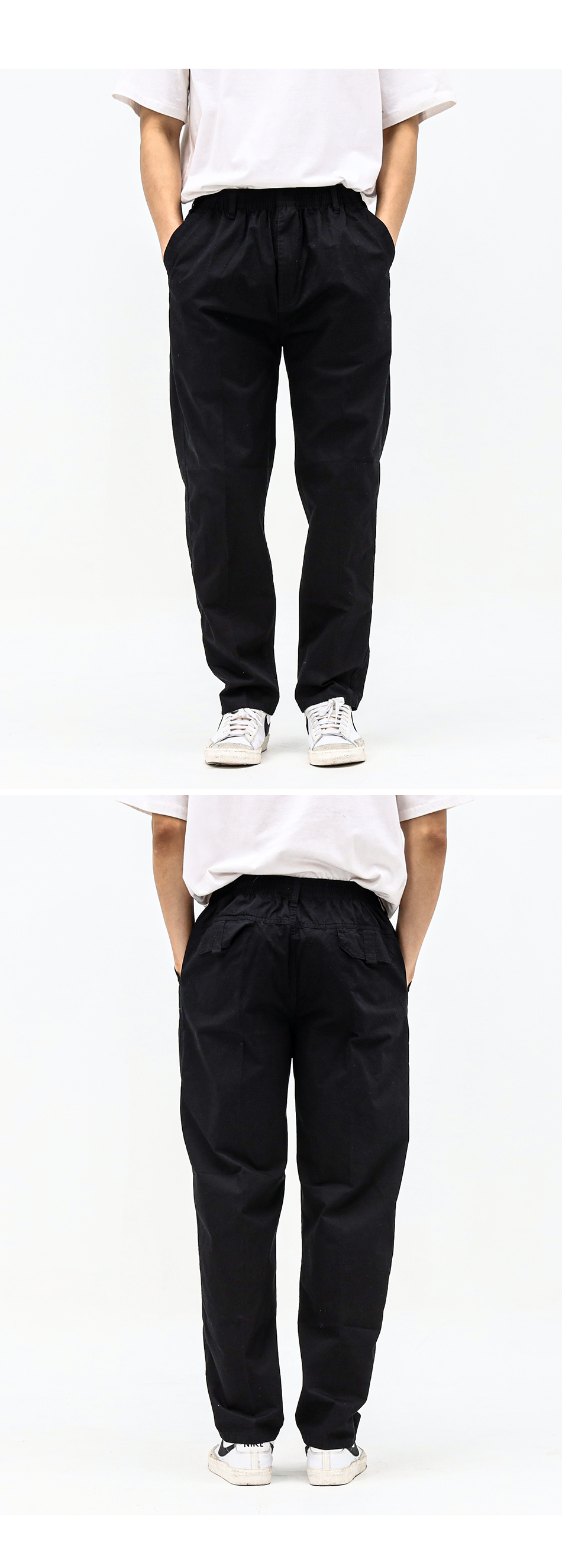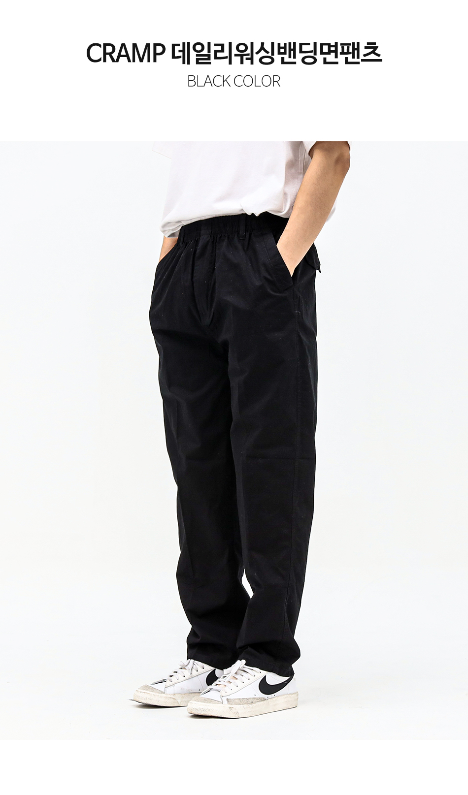 허리밴딩으로 편안한 착용감과 활동하기 좋은 면팬츠 베이직한 블랙컬러로 어떠한 상의랑도 매치하기 좋아 데일리로 입기 좋은 상품