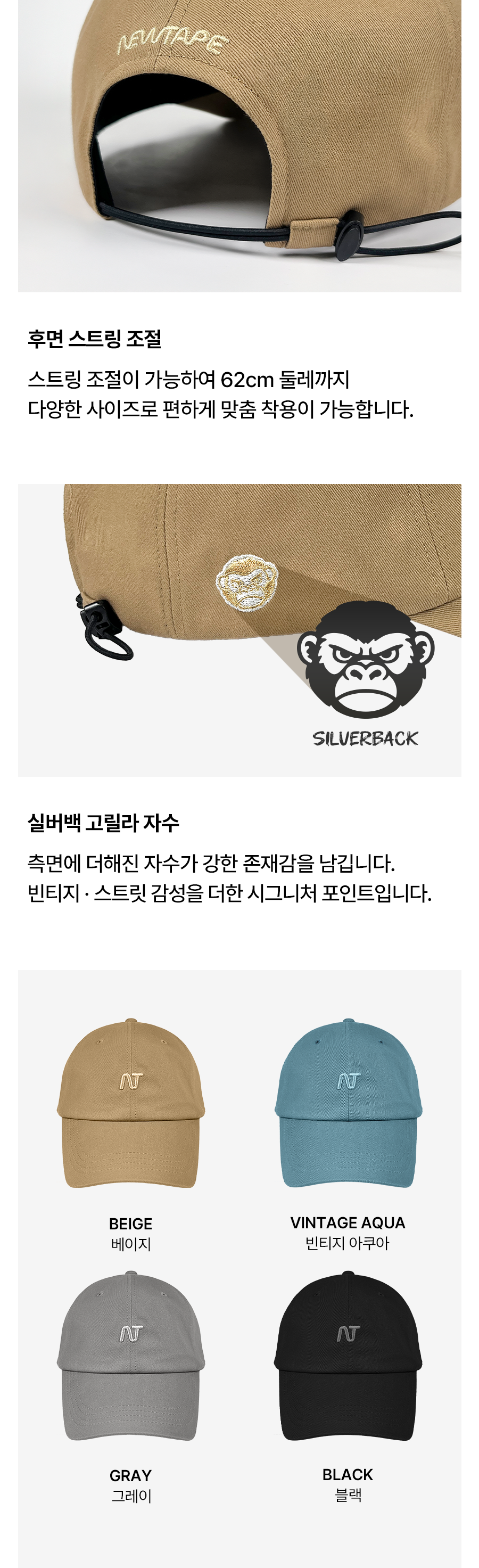 실버백 스트링 빅사이즈 볼캡 (빈티지아쿠아)