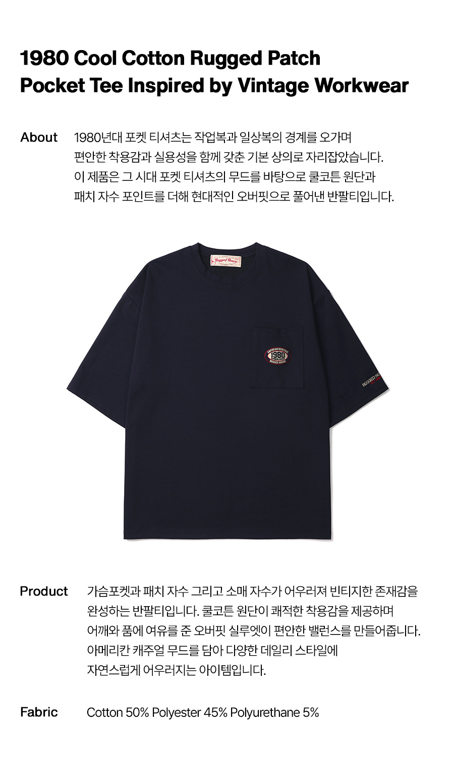 1980 쿨코튼 러기드 패치 포켓 반팔티 네이비
