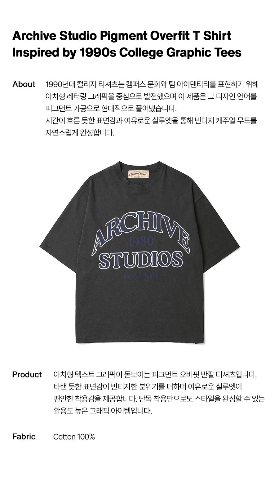 아카이브 스튜디오 피그먼트 오버핏 반팔티 챠콜