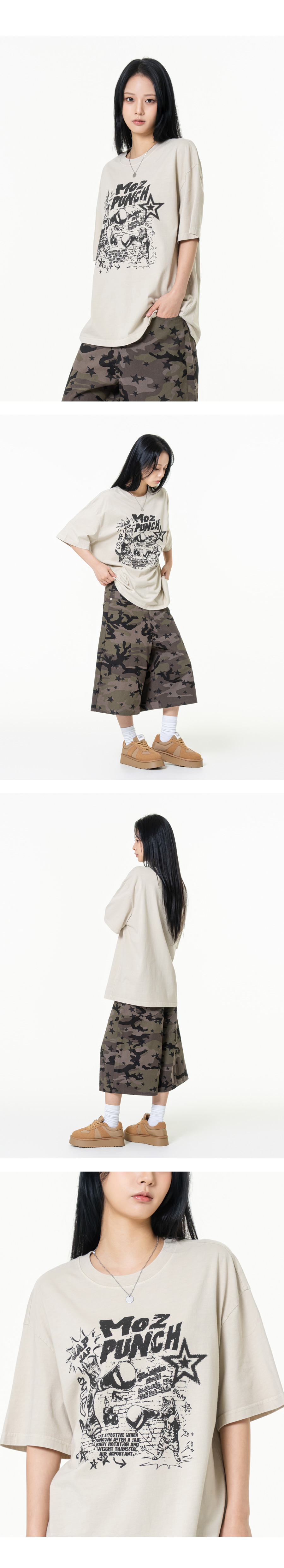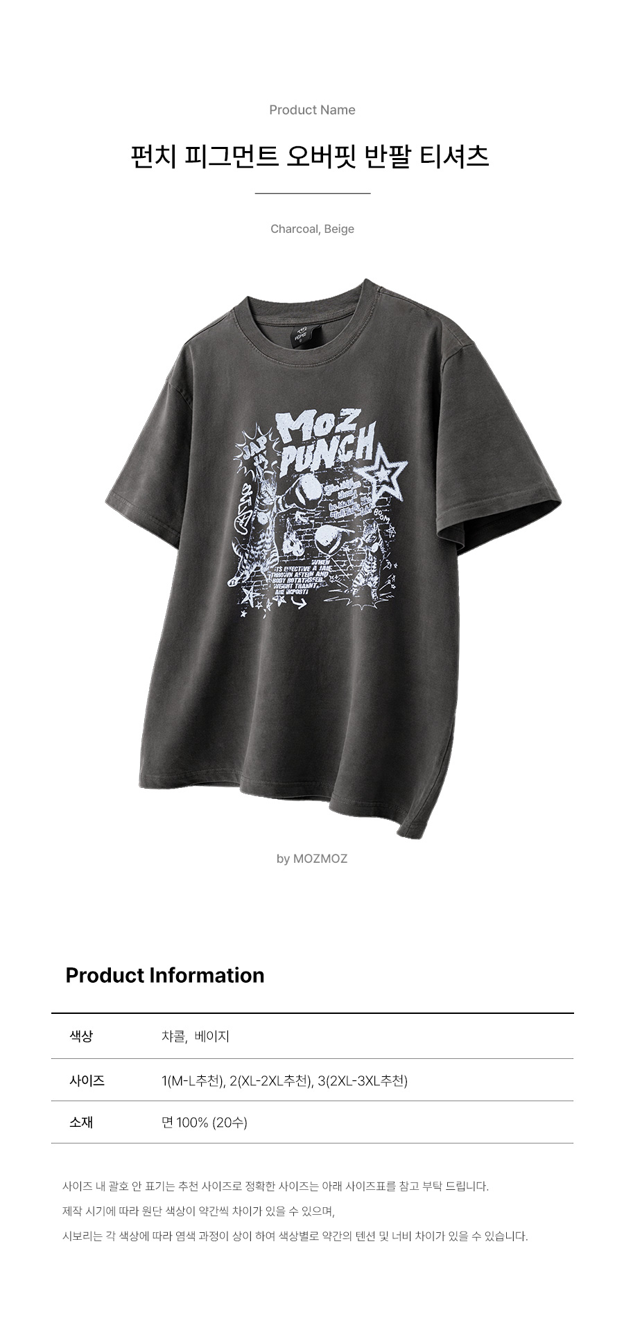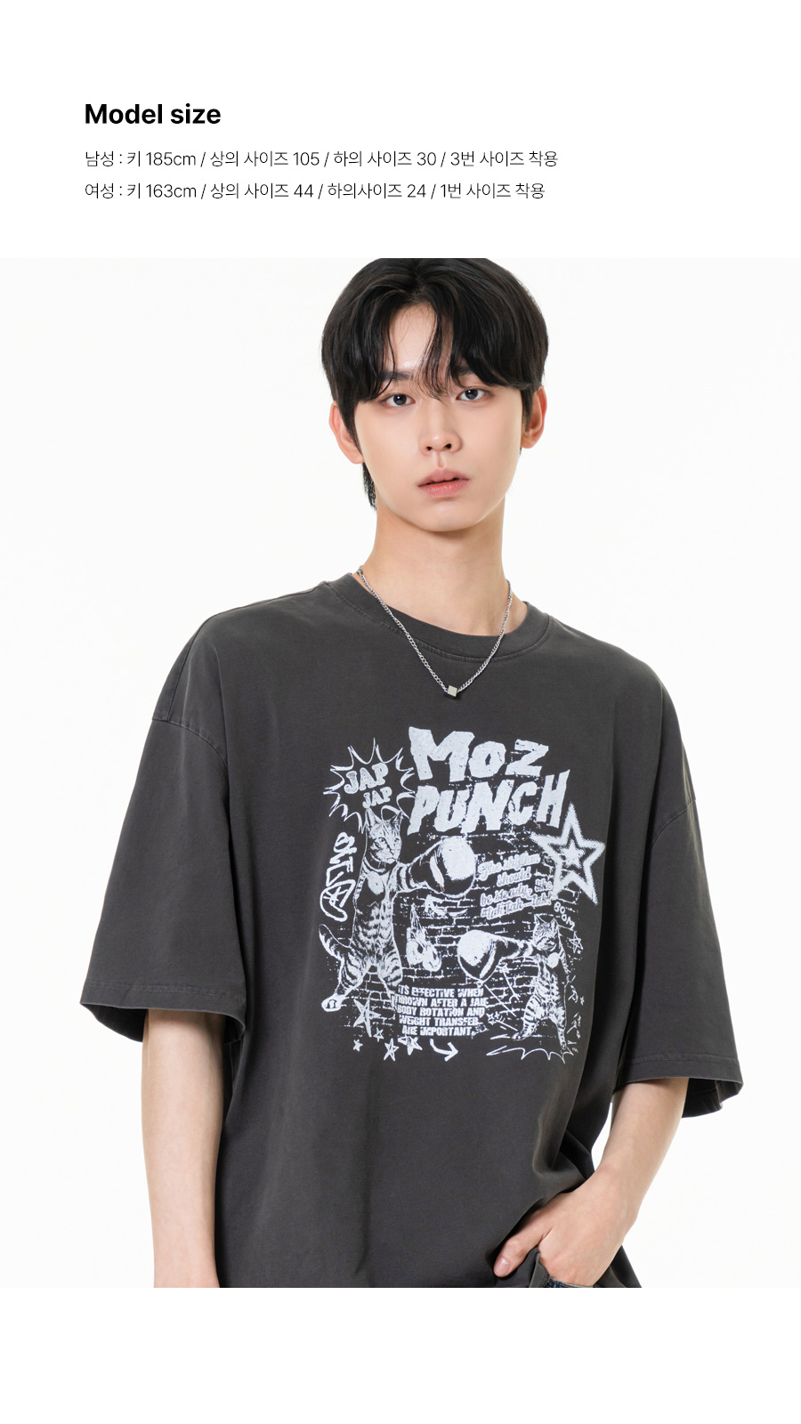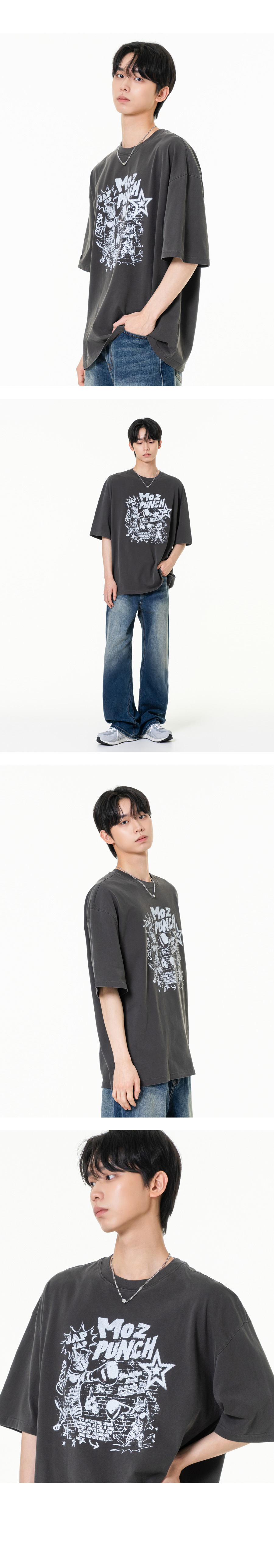 펀치 피그먼트 오버핏 반팔티셔츠 챠콜