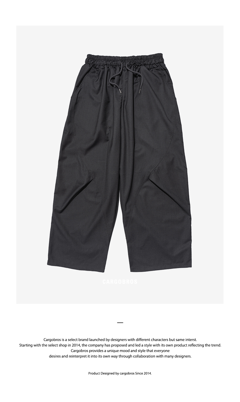 CURVED WIDE BANDING SLACKS (CHARCOAL)