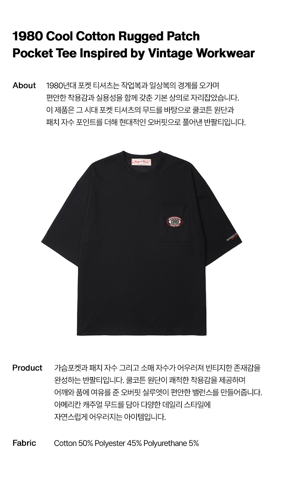 1980 쿨코튼 러기드 패치 포켓 반팔티 블랙