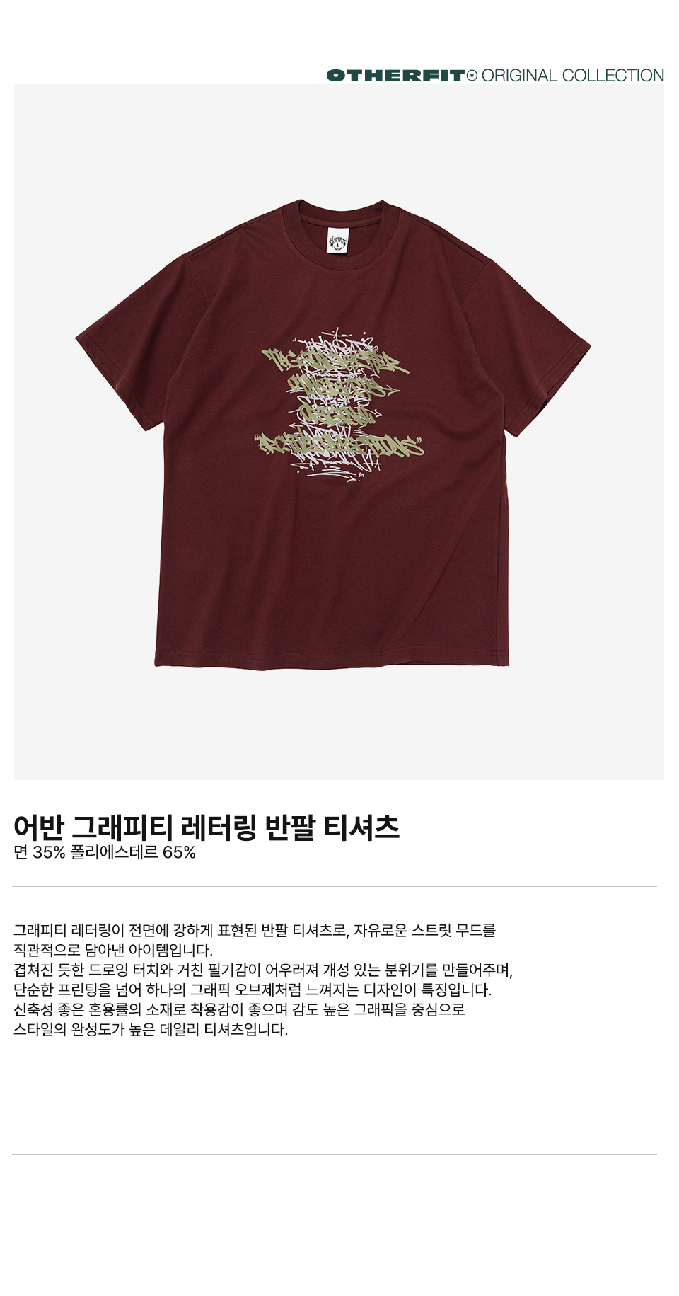 어반 그래피티 레터링 반팔 티셔츠 (와인)