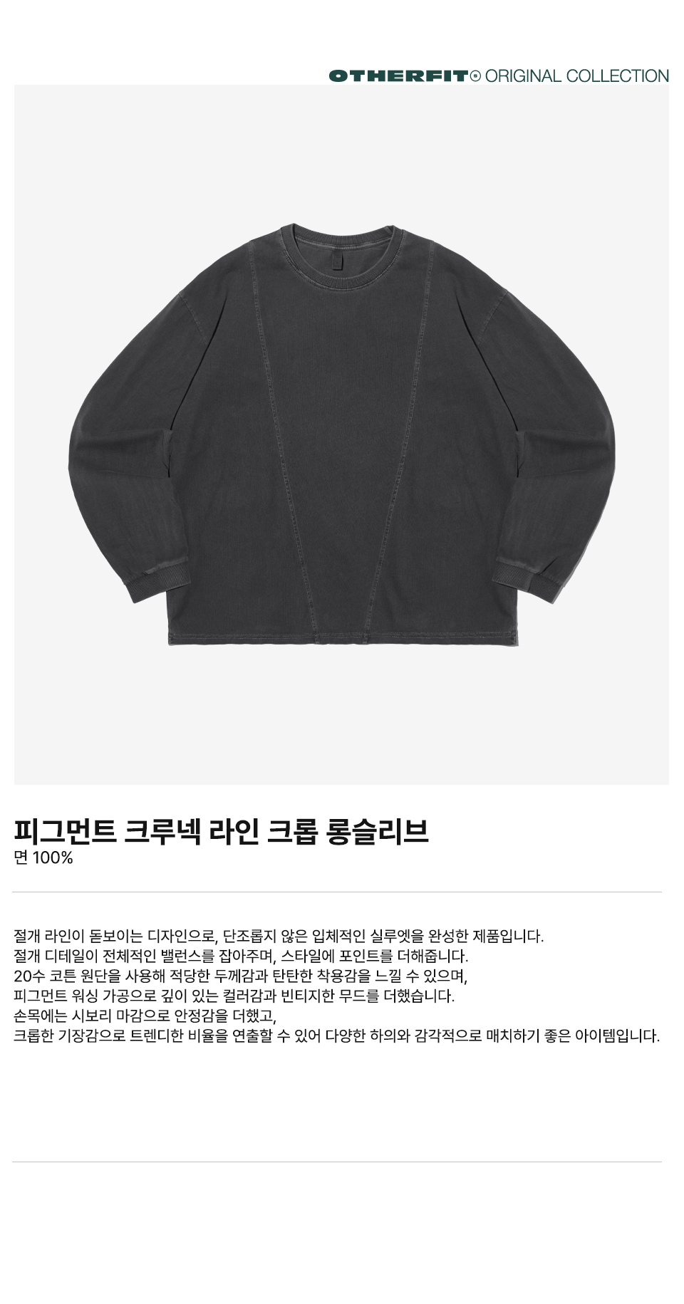 피그먼트 크루넥 라인 크롭 롱슬리브 (차콜)