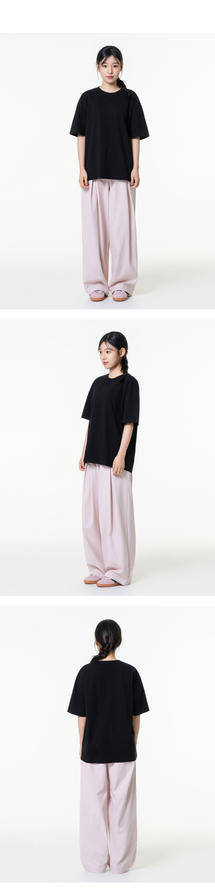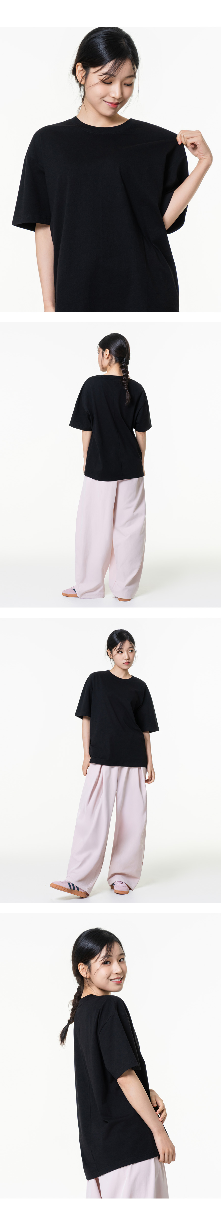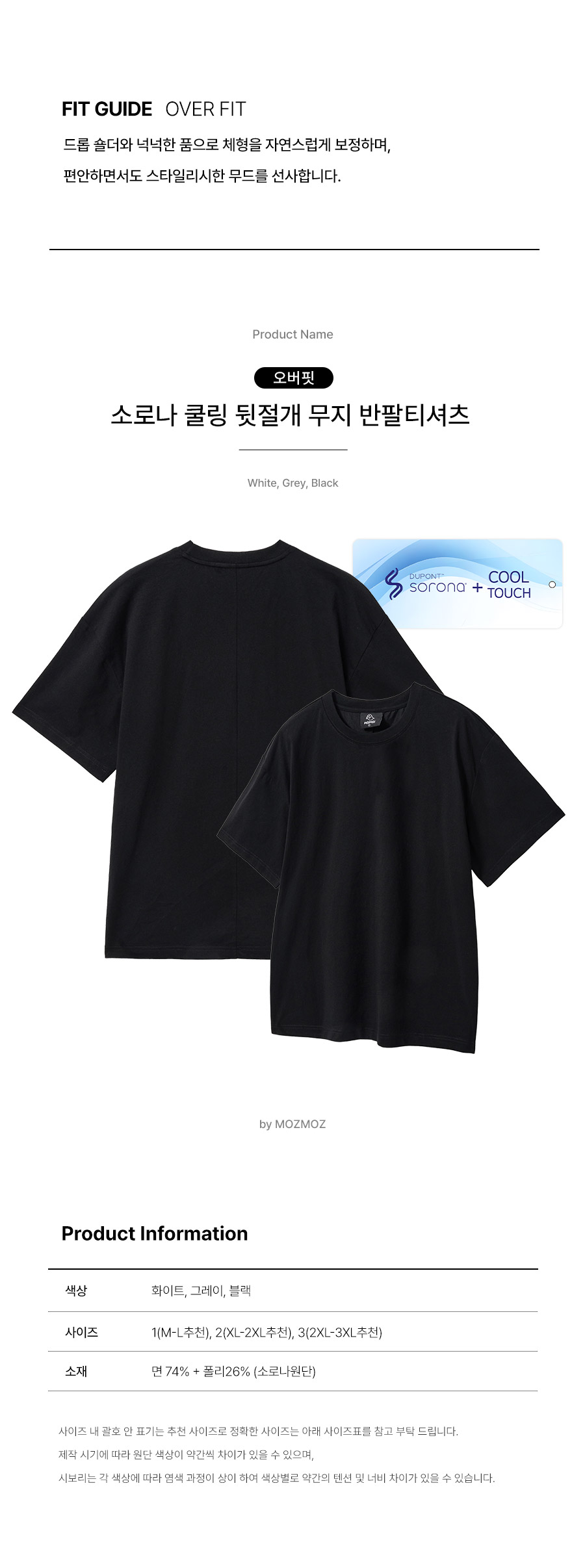 오버핏 소로나 쿨링 기능성 뒷절개 무지 반팔티셔츠 블랙