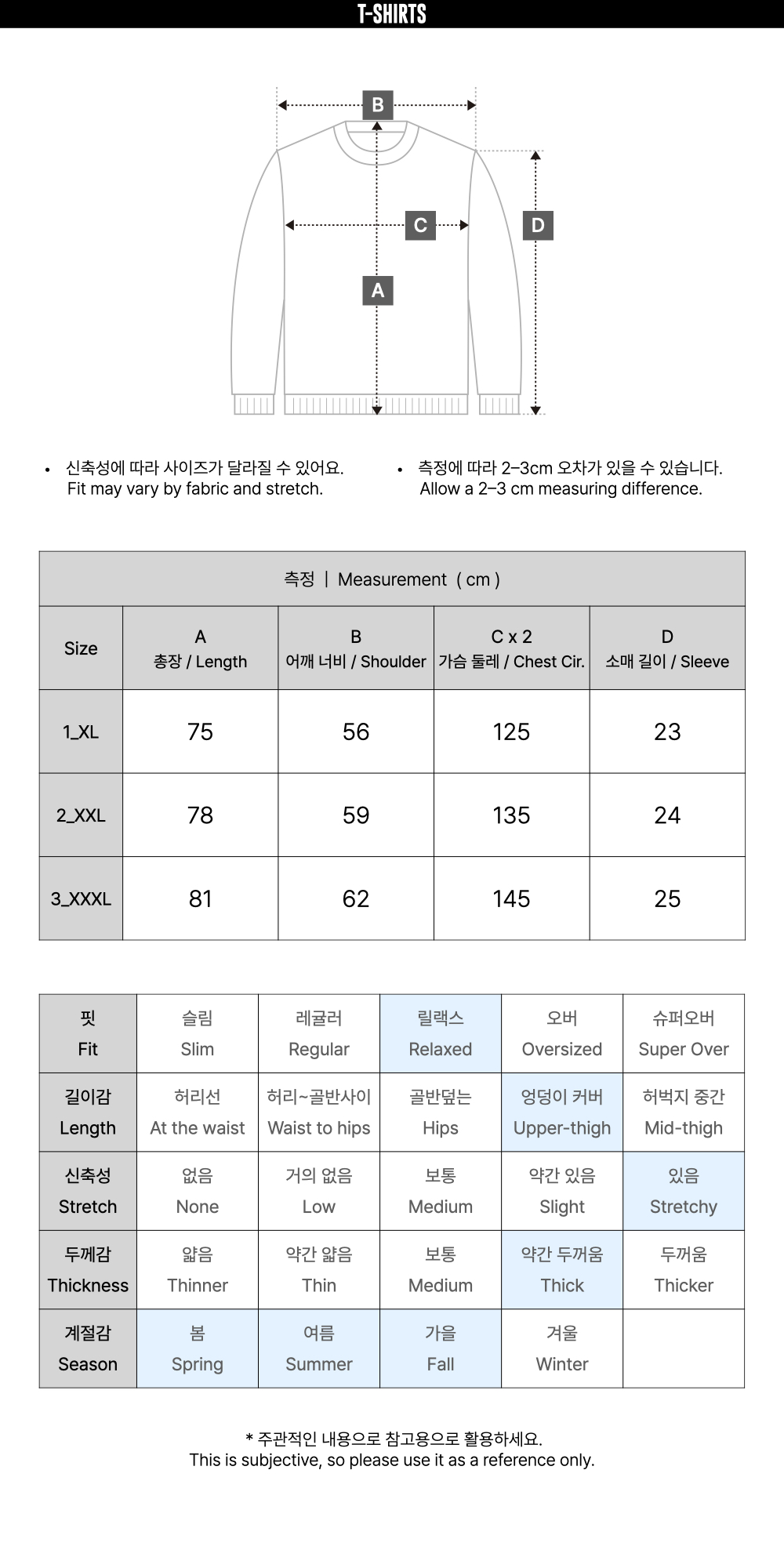 - 상품 상세란의 사이즈표는 업체 기준 측정정보 입니다.