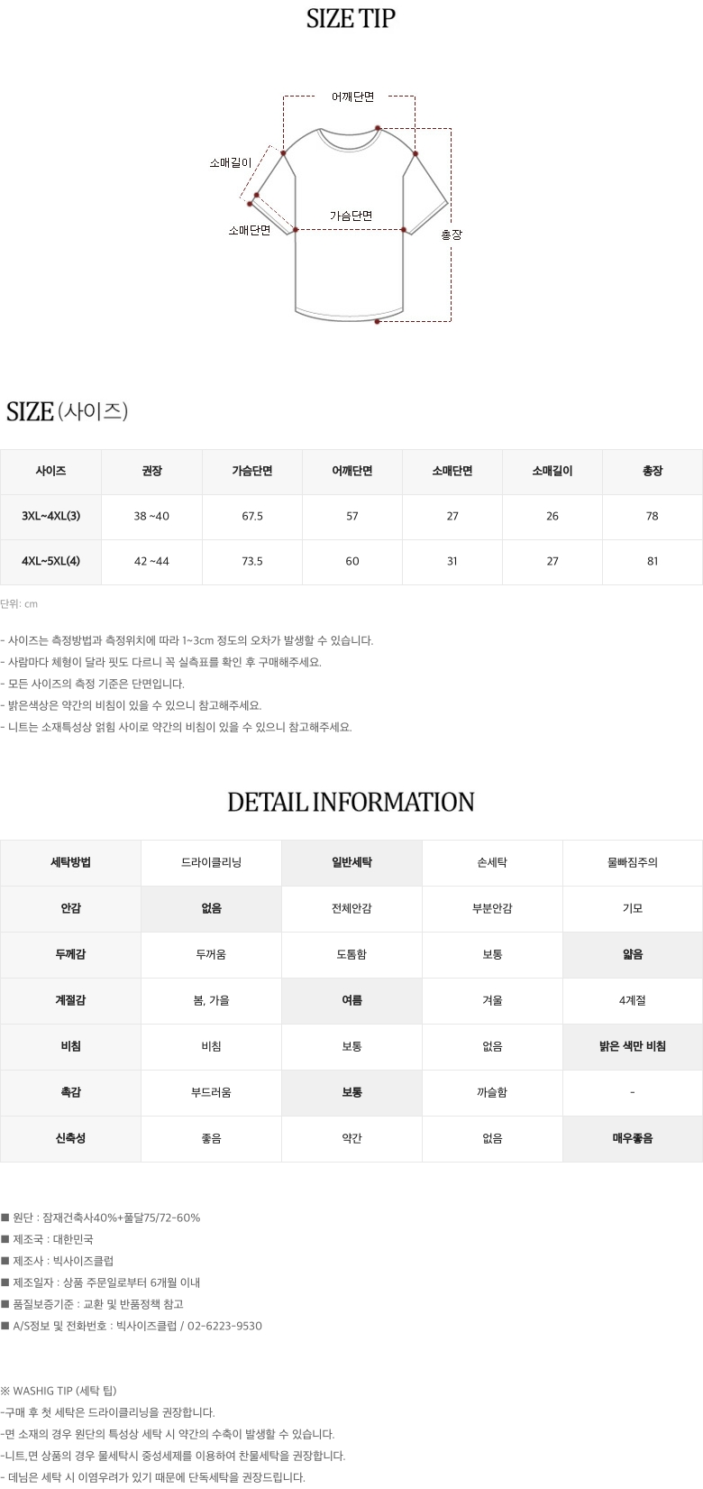 - 상품 상세란의 사이즈표는 업체 기준 측정정보 입니다.