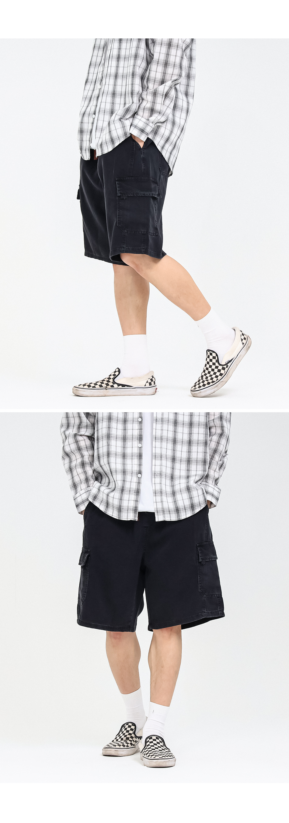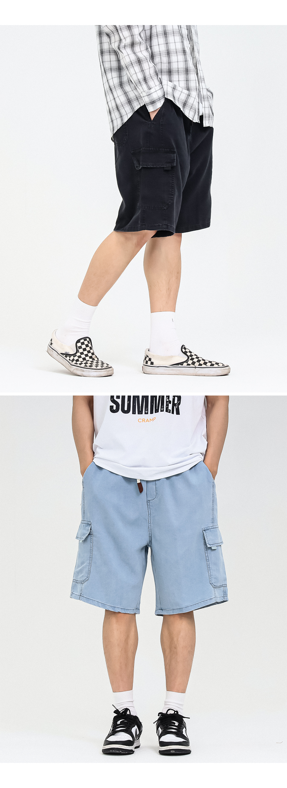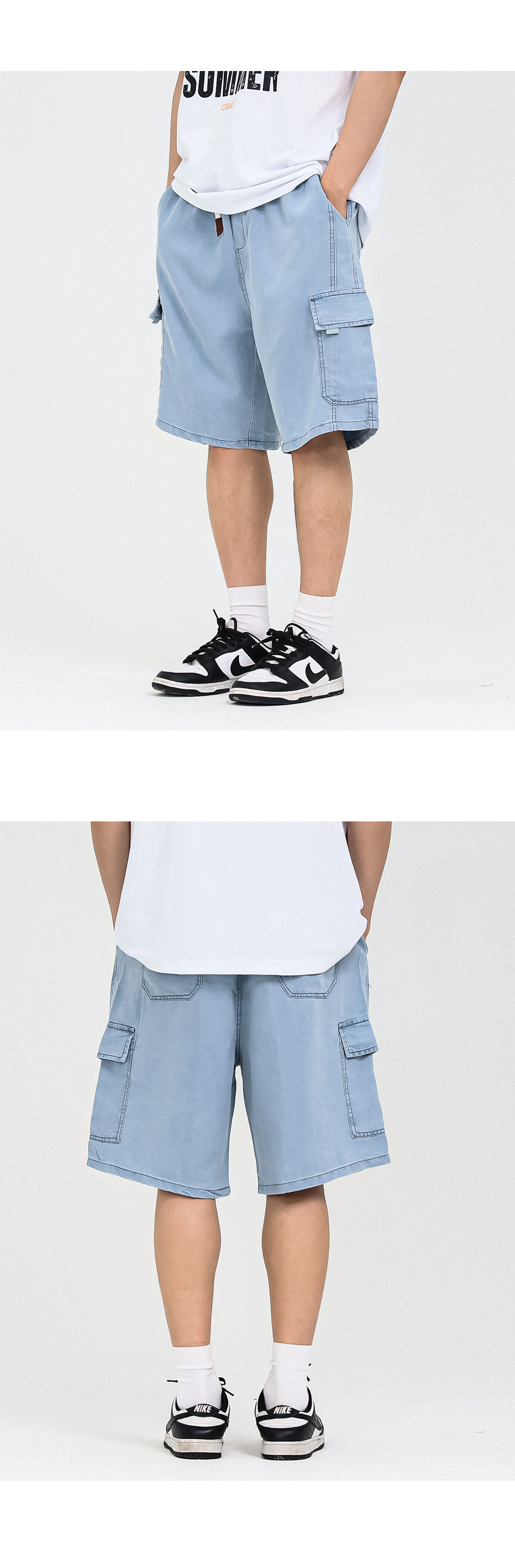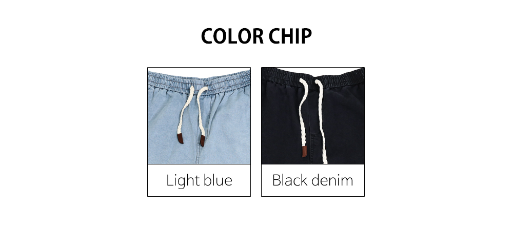 쿨링원단으로 한여름 시원하게 입기 좋고 허리밴딩으로 편안한 착용감과 카고포켓으로 포인트를 준 청반바지