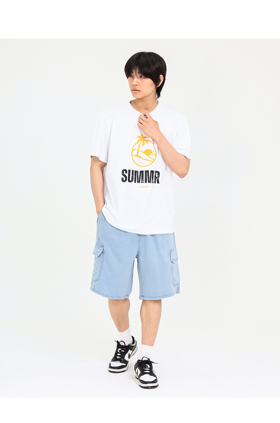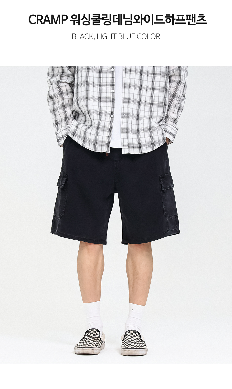 CRAMP 워싱쿨링데님와이드하프팬츠