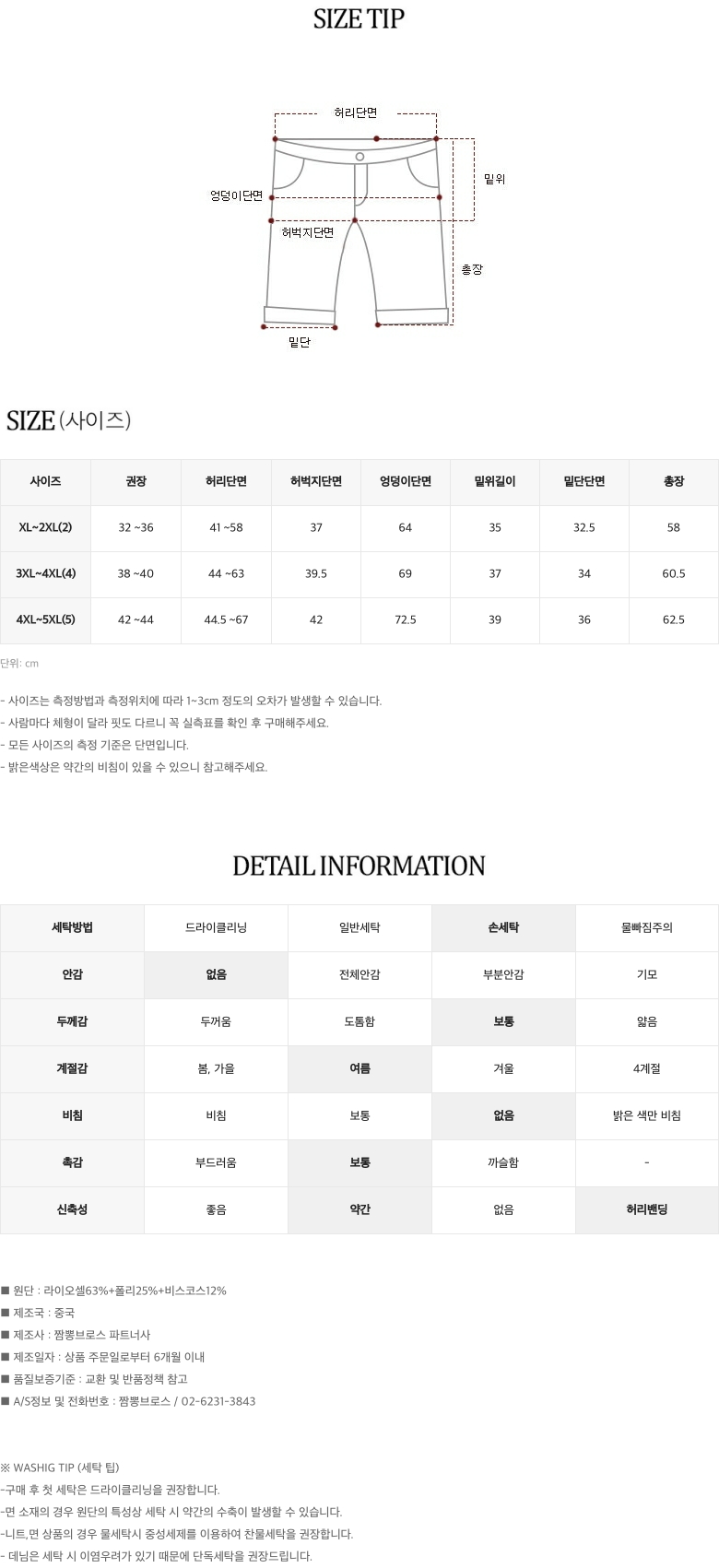 허리둘레 힙둘레 허벅지둘레 밑위 밑단둘레 총길이