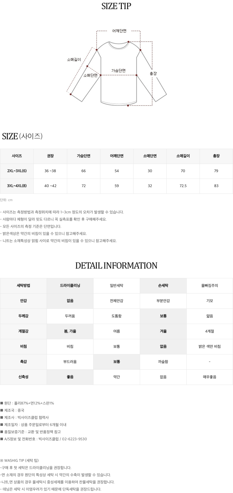 - 상품 상세란의 사이즈표는 업체 기준 측정정보 입니다.