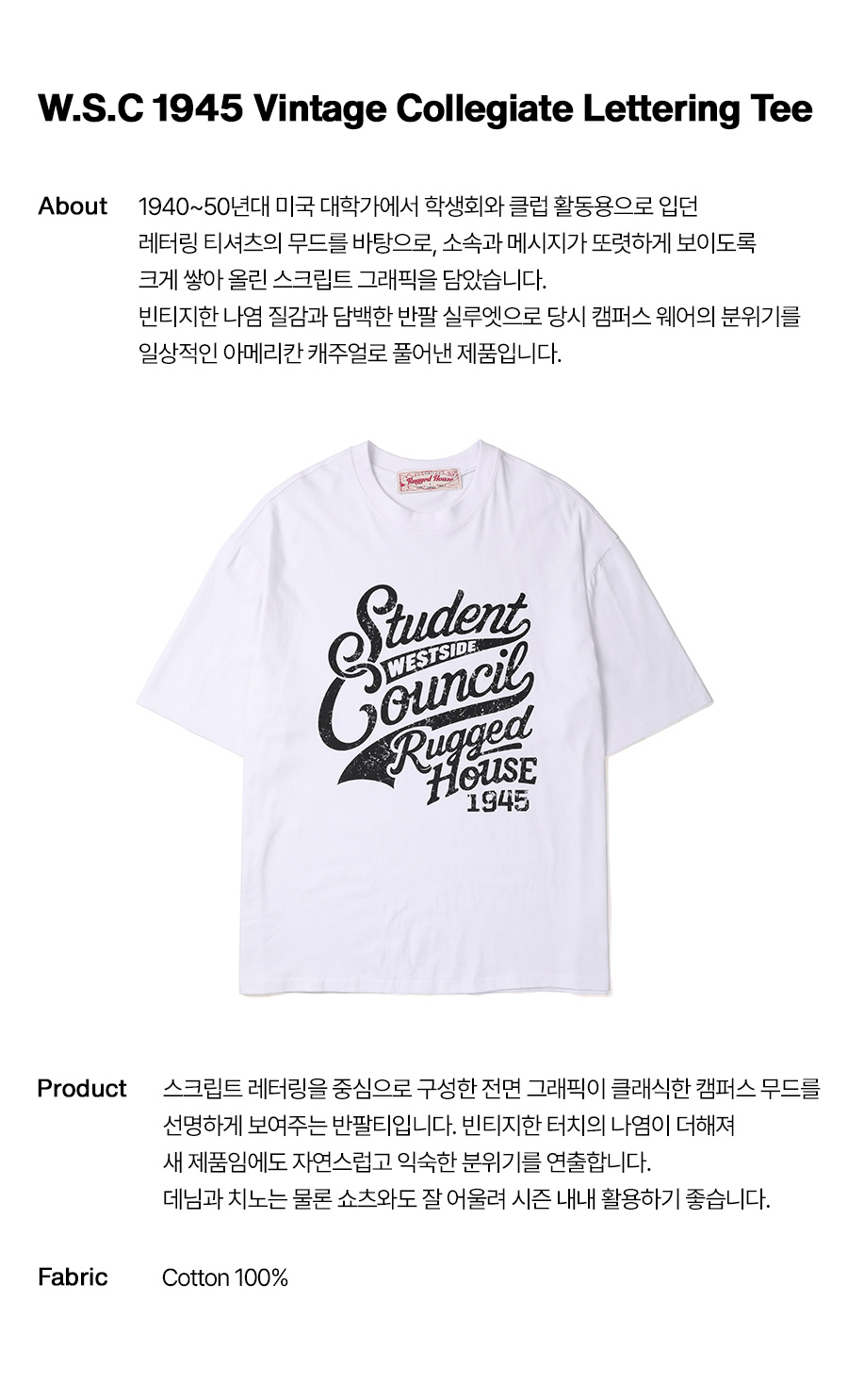 W.S.C 1945 반팔티 화이트
