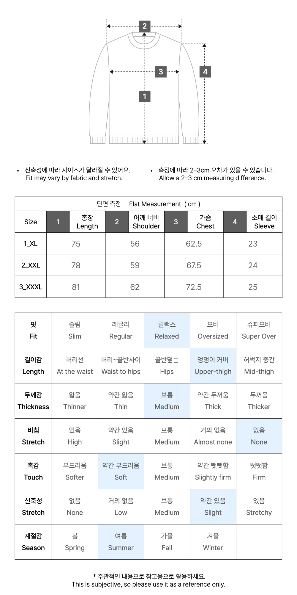 - 상품 상세란의 사이즈표는 업체 기준 측정정보 입니다.