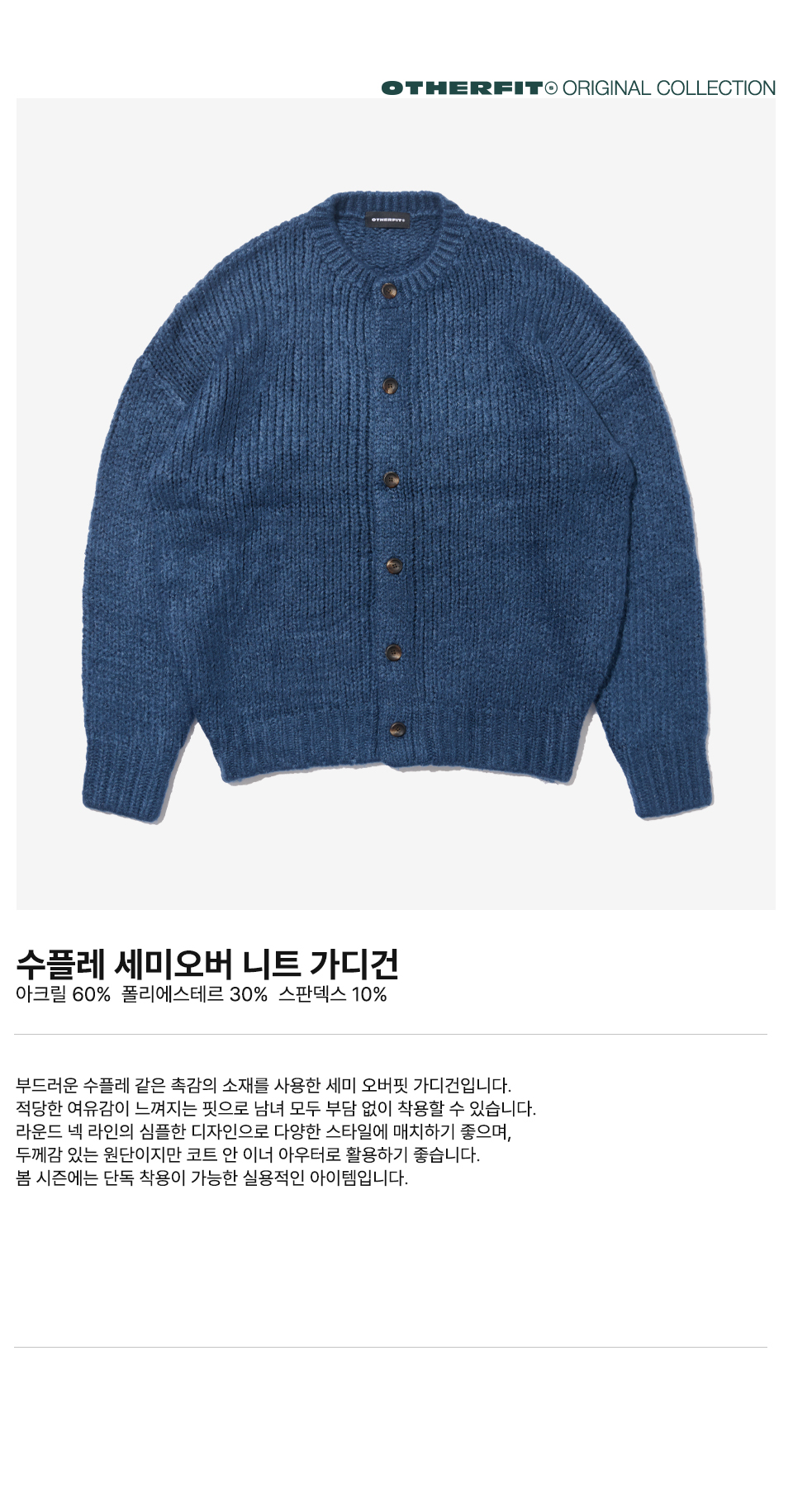수플레 세미오버 니트 가디건 (네이비)