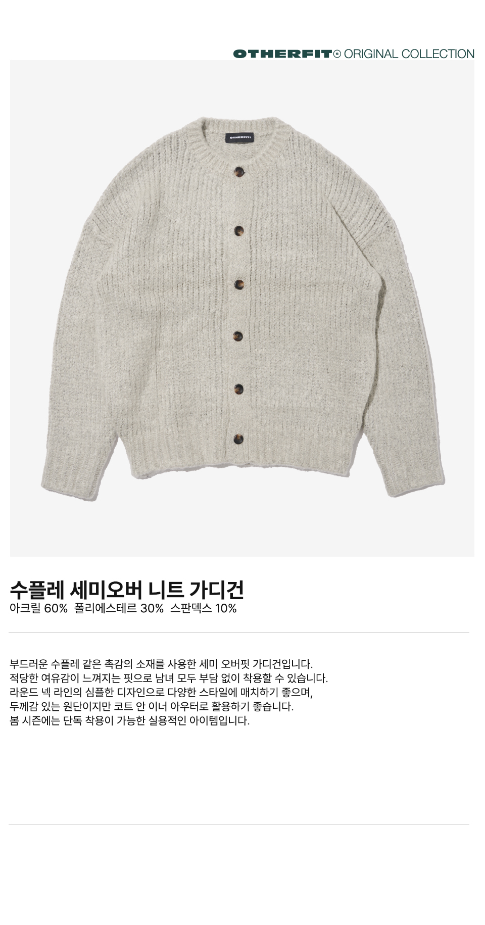 수플레 세미오버 니트 가디건 (그레이)