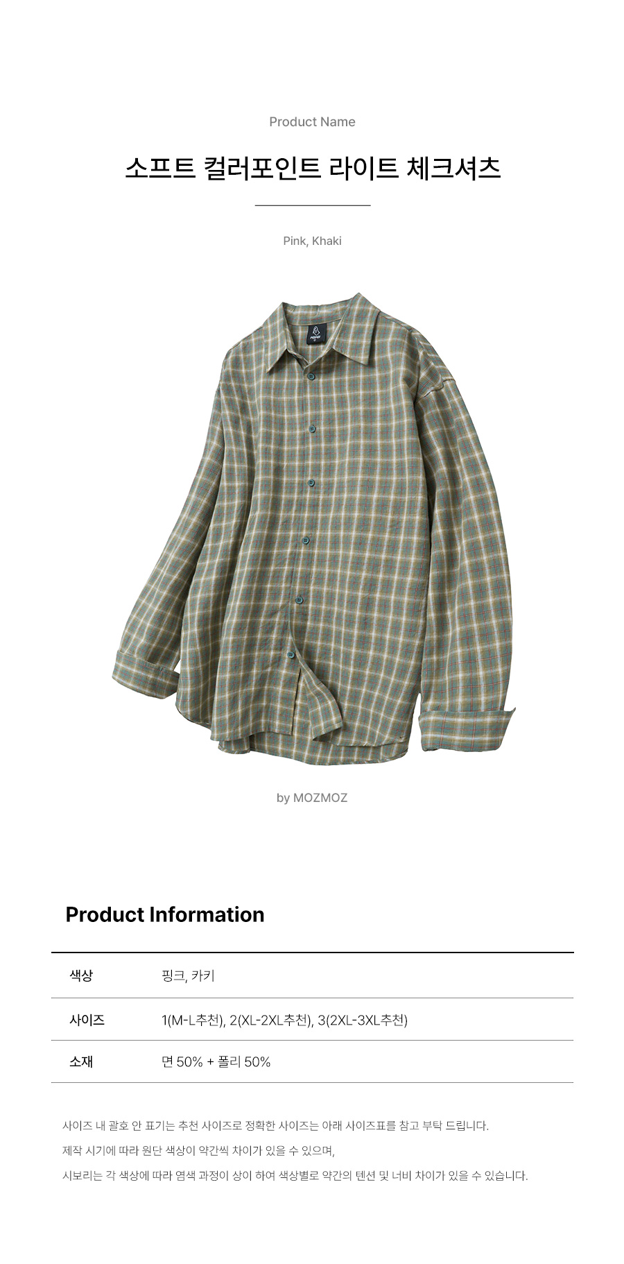 소프트 컬러포인트 라이트 체크셔츠 카키
