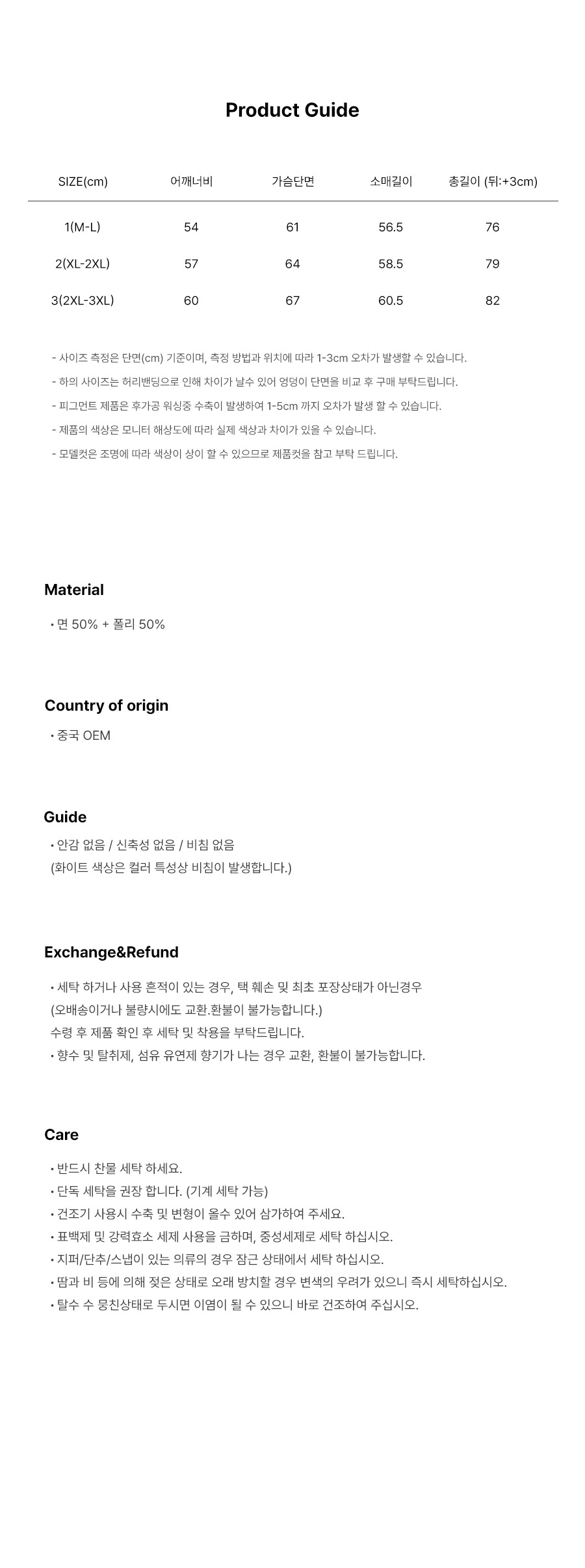 | 컬러 & 사이즈 | 상품 상세 사이즈 참조 | |
