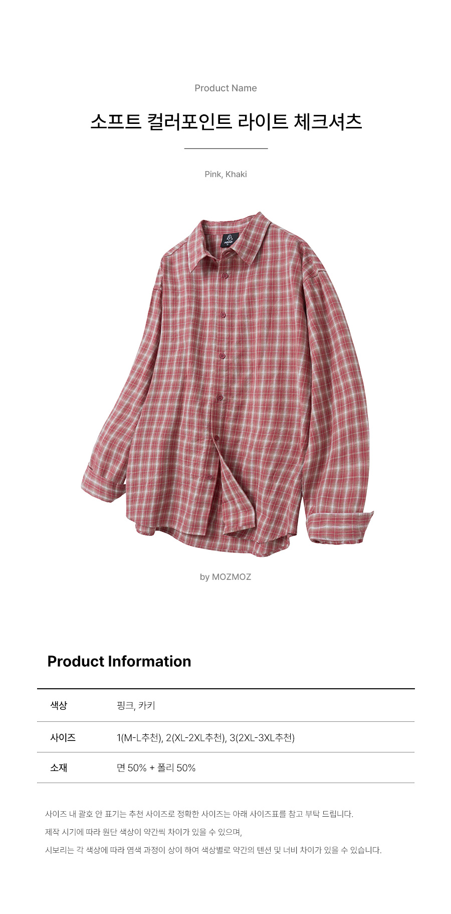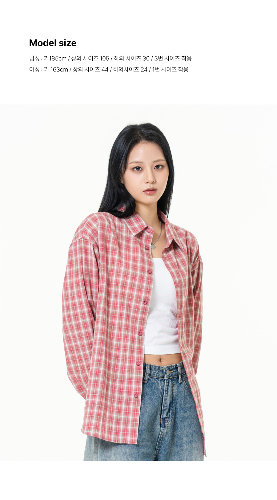 소프트 컬러포인트 라이트 체크셔츠 핑크