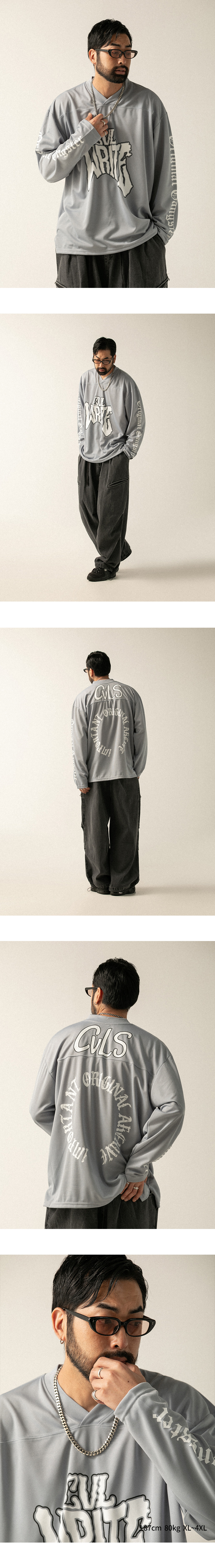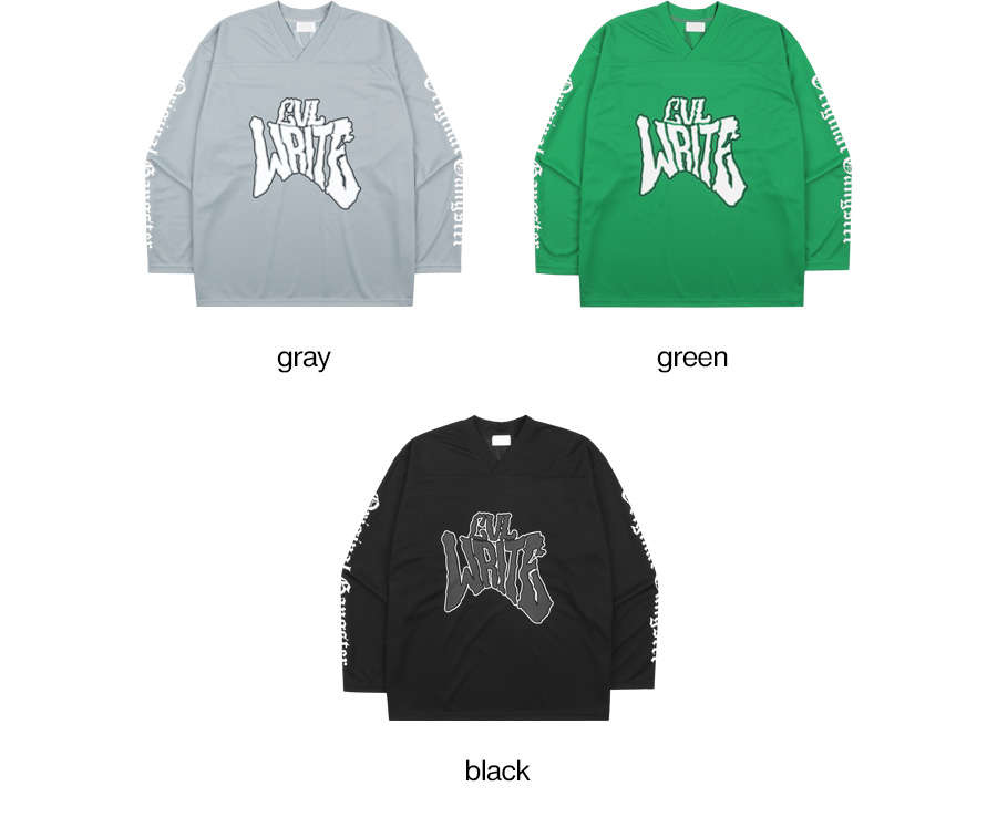 ⦁ V넥 디자인과 어깨 요크(Yoke) 라인 디테일을 적용하여 스포티하고 트렌디한 하키/풋볼 저지 스타일을 구현