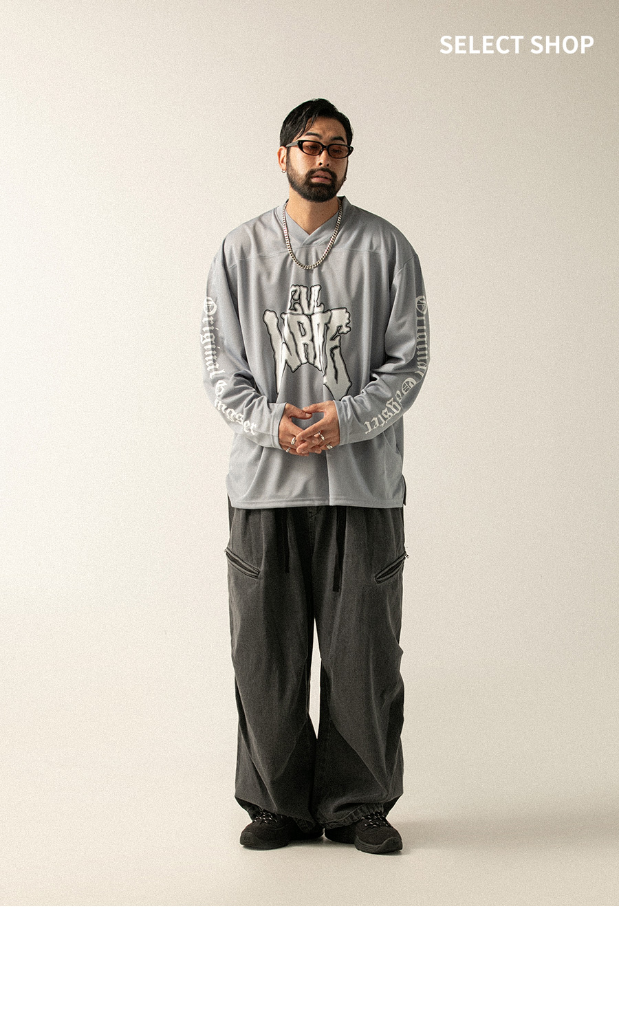 ⦁ 전면 중앙에 강렬한 타이포그래피 프린팅, 후면에 서클 레터링과 로고를 배치하여 스트리트 무드를 극대화