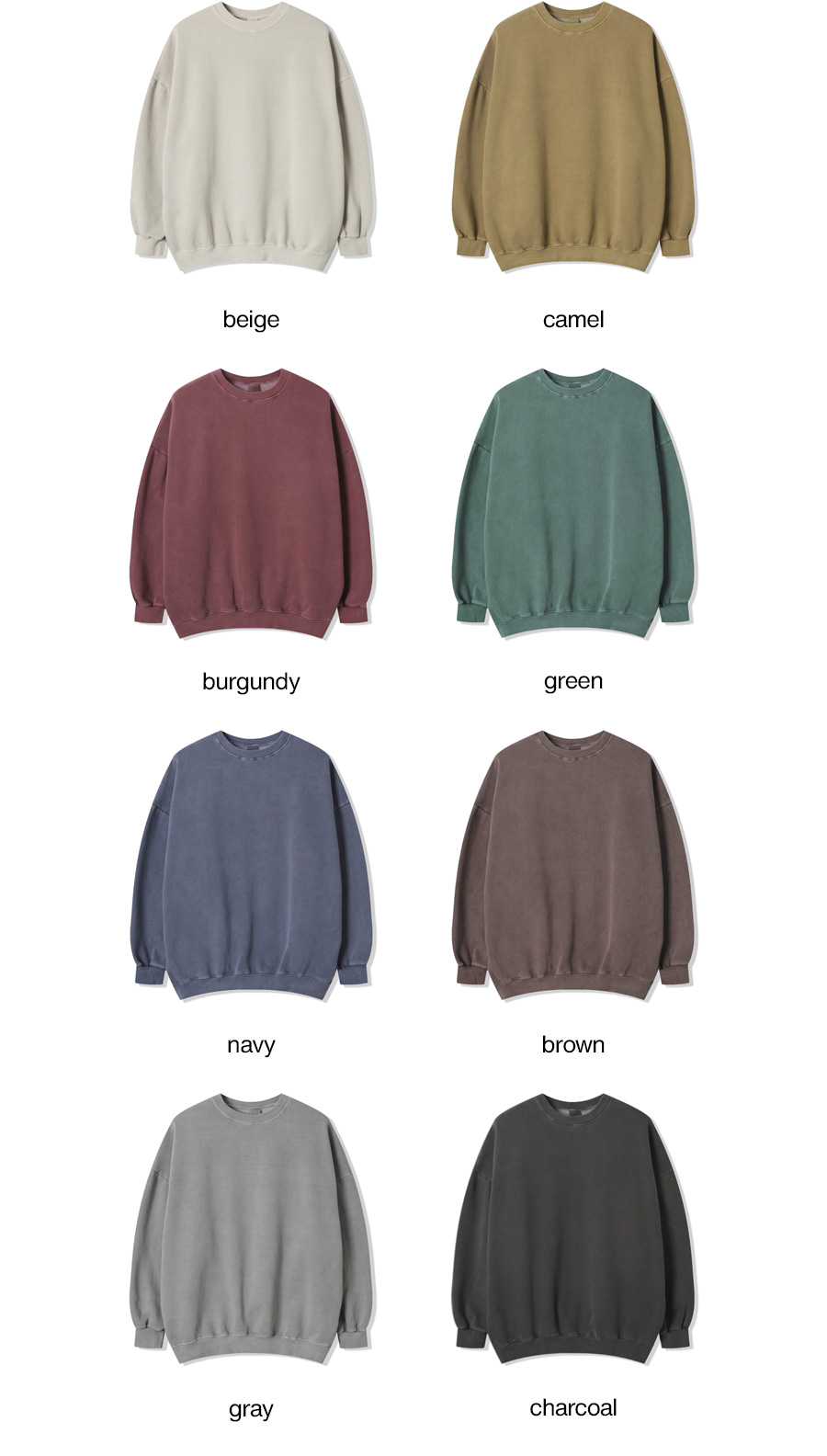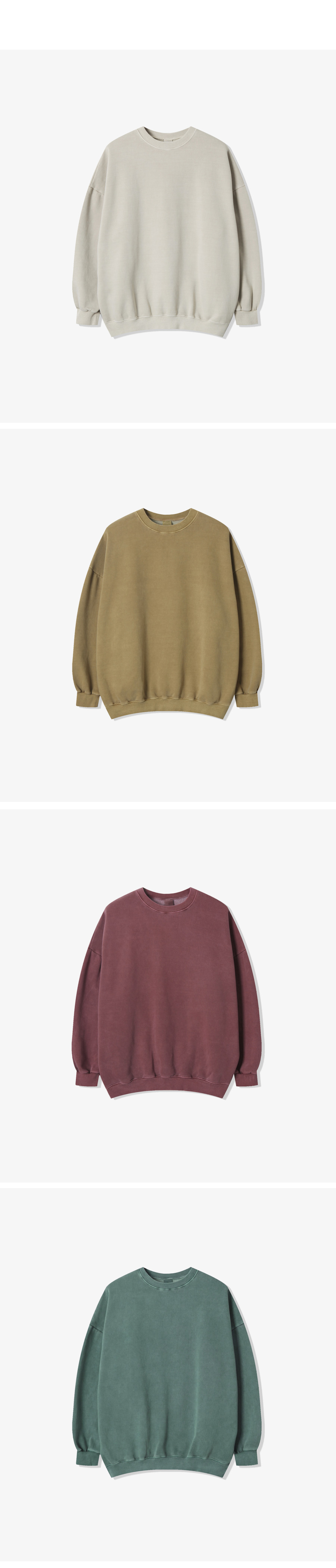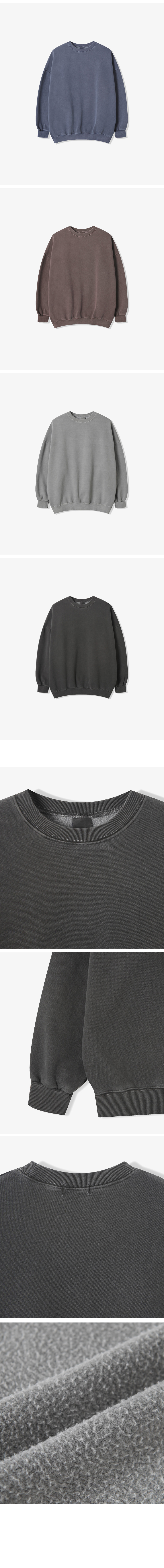 피그먼트 무지 오버핏 기모 맨투맨 8컬러
