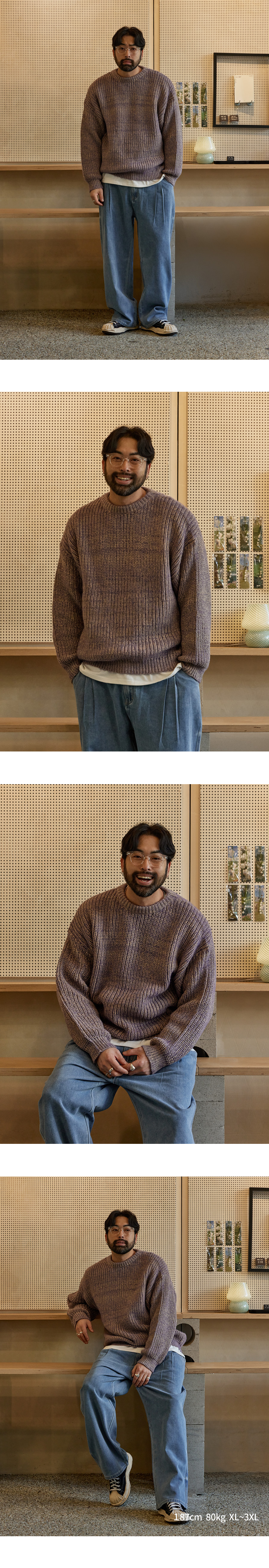 ⦁ 굵직한 하찌 조직이 입체적인 표면감을 만들어내는 오버핏 니트입니다.