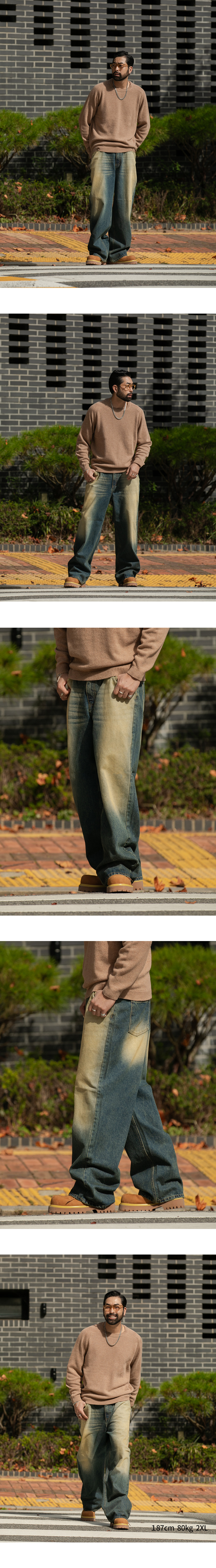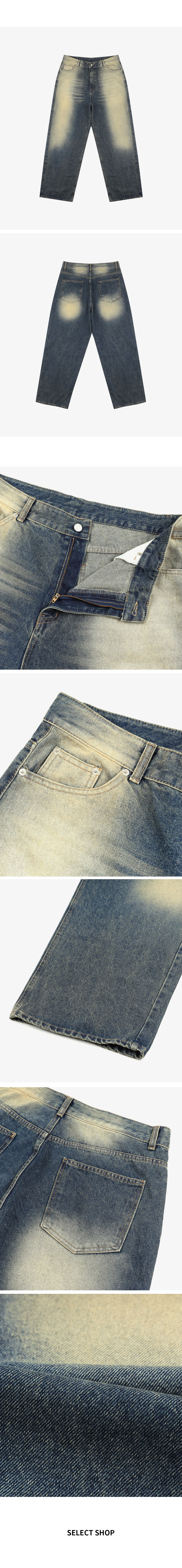 ⦁ 데님 전체에 투톤(Two-Tone) 워싱 또는 페이딩 기법을 적용하여 유니크하고 빈티지한 아웃핏을 극대화