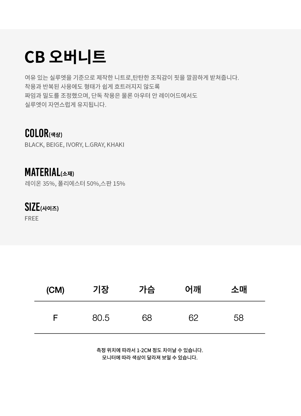 | 컬러 & 사이즈 | 상품 상세 사이즈 참조 | |