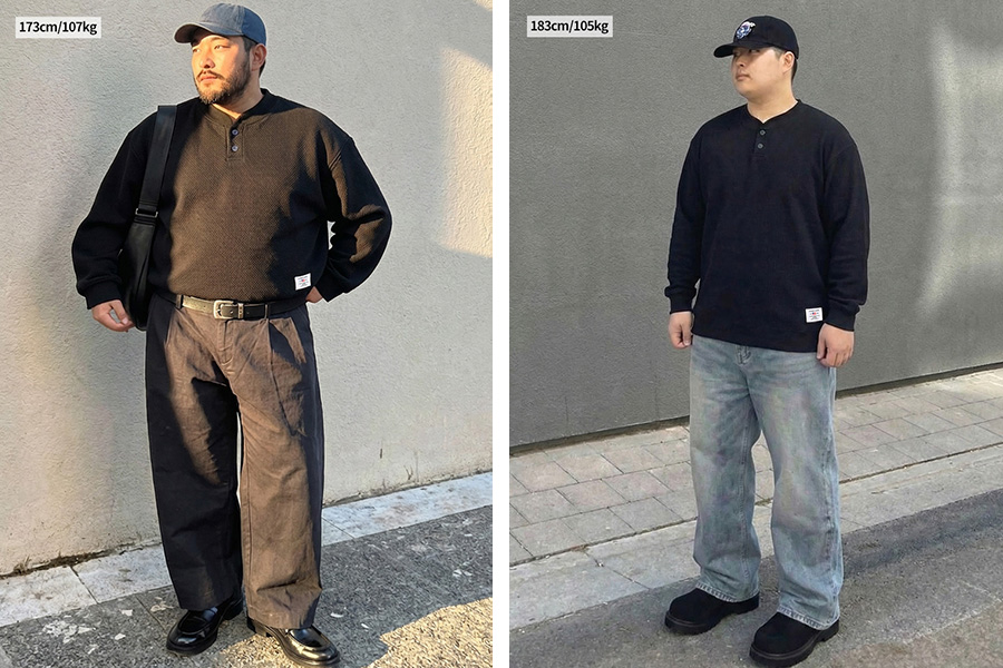 헨리넥 와플 버튼 티셔츠 블랙