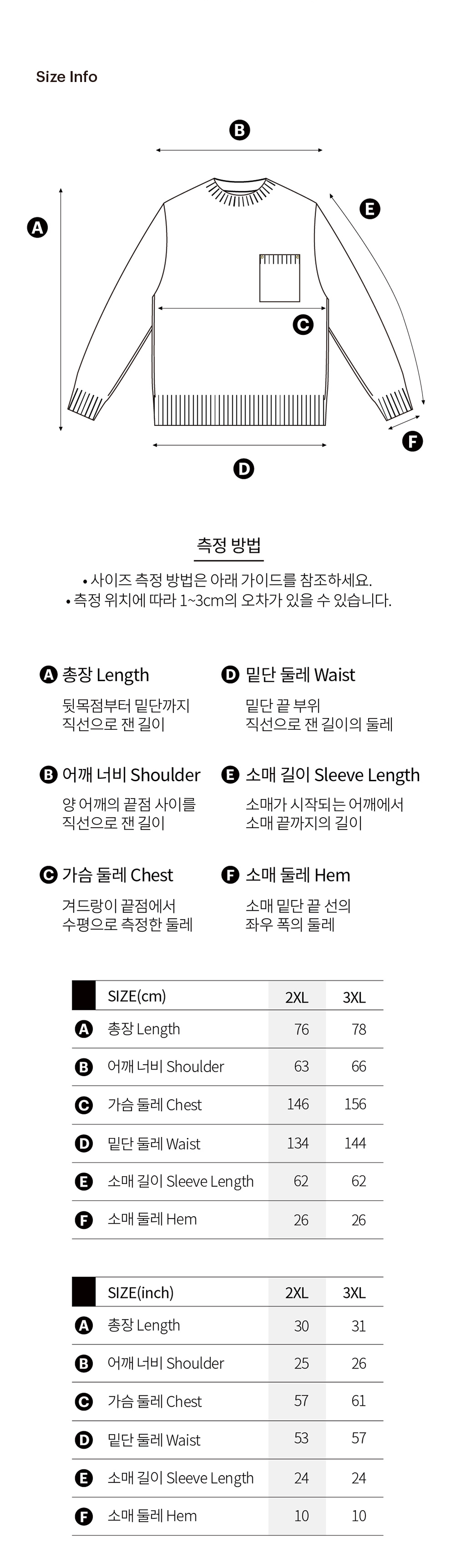 - 상품 상세란의 사이즈표는 업체 기준 측정정보 입니다.